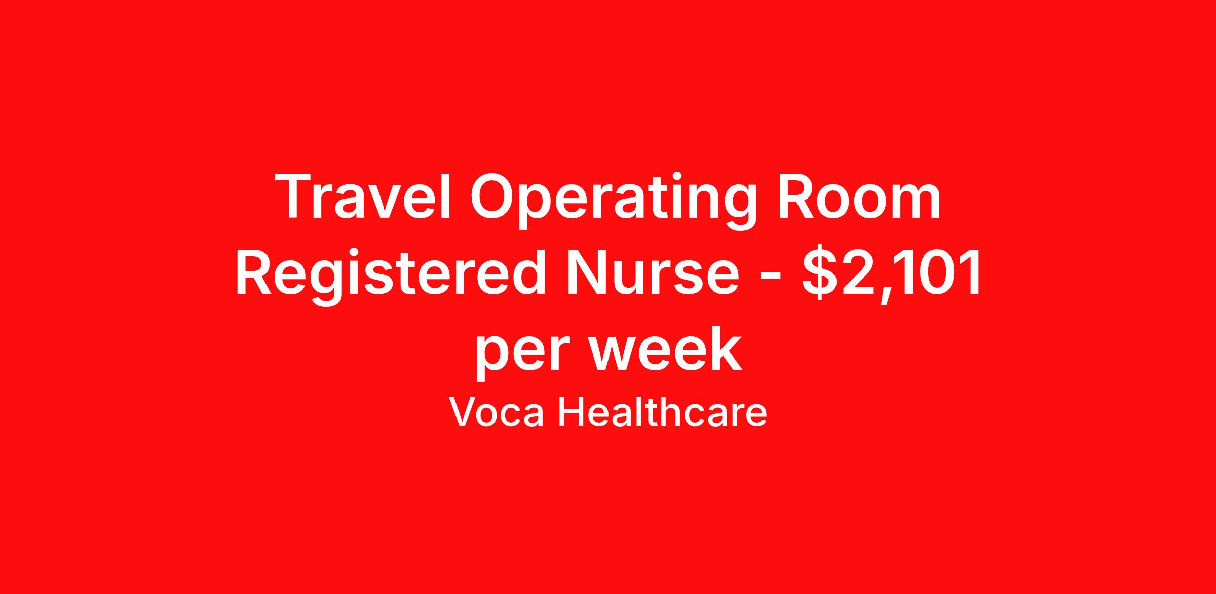 Voca Healthcare is seeking a travel nurse RN OR - Operating Room for a travel nursing job in Duluth, Georgia. Job Description & Requirements Specialty: OR - Operating Room Discipline: RN Start Date: 04/13/2026 Duration: 13 weeks 36 hours per week Shift: 12 hours, days Employment Type: Travel Benefits available on 1st of the month after start: Holiday pay Weekly pay Retention bonus 401k retirement plan Medical benefits Dental benefits Vision benefits Referral bonus Voca Healthcare Job ID 17949959. Pay package is based on 12 hour shifts and 36.0 hours per week (subject to confirmation) with tax-free stipend amount to be determined. Posted job title: RN:OR - Operating Room,07:00:00-19:00:00 About Voca Healthcare As a Voca Traveler, you will gain new clinical skills, visit amazing places and meet awesome healthcare professionals. As a travel health professional, your experience and dedication to patient care is in high demand throughout the United States. Whether you are a veteran traveler looking for your next opportunity, or you are looking to travel for the first time, Voca is here to support you. Voca’s experienced and dedicated travel team works in concert with you every step of the way. Our long-standing partnerships with some of the most respected and recognized healthcare organizations in the country allow us to identify career opportunities to help you increase your knowledge and experience while working with some of the best physicians and healthcare professionals in the world. At Voca, we strongly believe a better career results in a happier you. We are here to help you find a position that is professionally and personally rewarding. Benefits Holiday Pay 401k retirement plan Medical benefits Dental benefits Vision benefits Guaranteed Hours