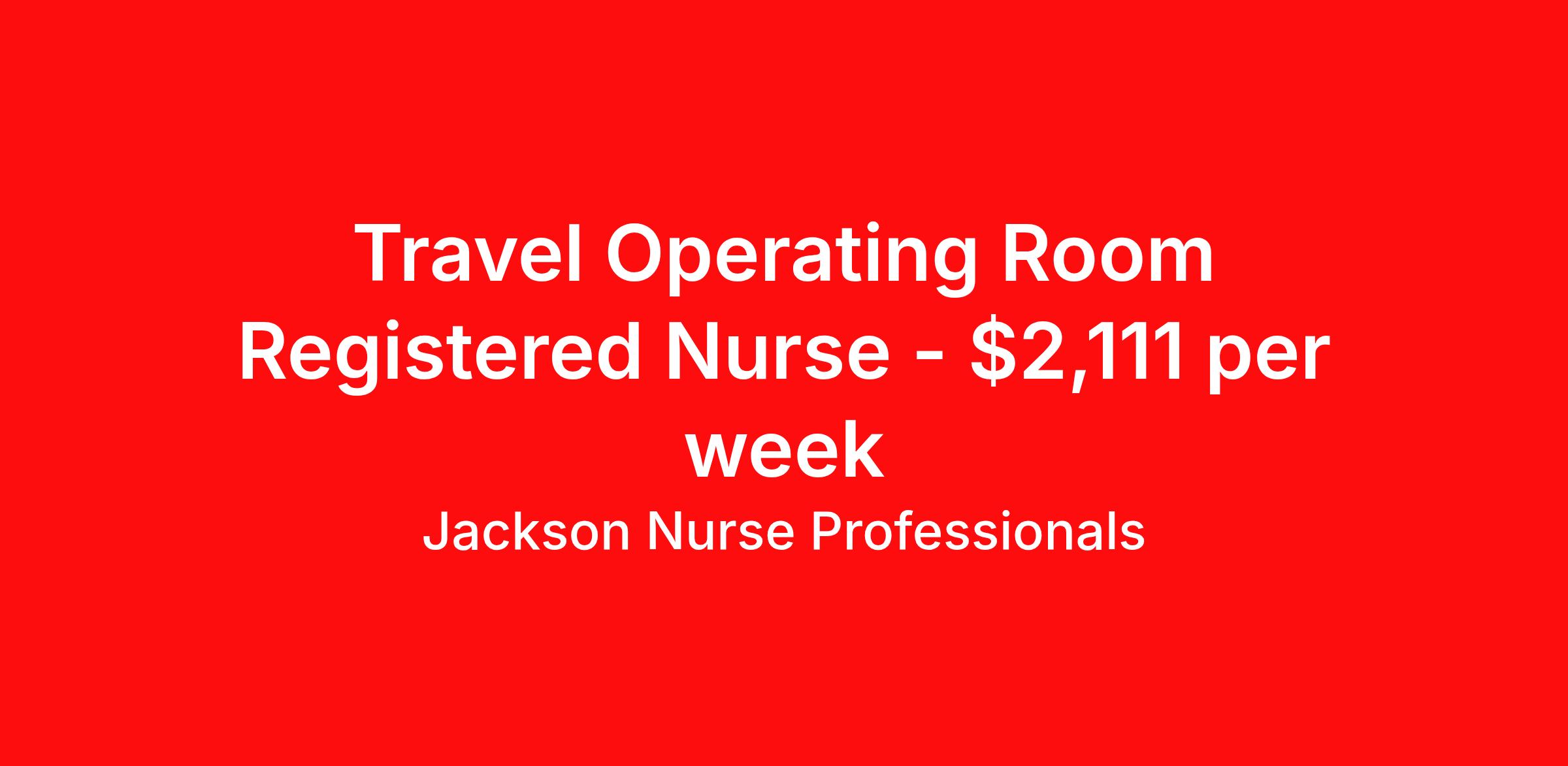 Jackson Nurse Professionals is seeking a travel nurse RN OR - Operating Room for a travel nursing job in Charlotte, North Carolina. Job Description & Requirements Specialty: OR - Operating Room Discipline: RN Start Date: 05/18/2026 Duration: 13 weeks 36 hours per week Shift: 12 hours, nights Employment Type: Travel At Jackson Nurse Professionals , we are dedicated to supporting travel nurses and helping you build a fulfilling nursing career. Whether you’re looking for your first or next travel nursing assignment, we specialize in connecting healthcare professionals with leading medical facilities. With a focus on personalized service and a wide range of opportunities, we make it easier than ever for nurses to find the right balance of adventure and professional growth. Qualifications: 2 years of recent experience in area of specialty listed on job Current BLS required (certifications vary by location – job may require ACLS) Valid license and/or certification in state of practice Valid Driver's License Background and drug screen Benefits: Full Medical, Dental and Vision Insurance 401(k) with Employer Match 24/7/365 Support from your Recruiter available by text, phone, or email Referral Bonus Program: Give $200, Get $500 for every referral Same Day Immediate Pay Access Certification & Licensure Reimbursement Apply today to experience the Jackson Nurse Professionals difference! Jackson Nurse Professionals Job ID 2506226. Pay package is based on 12 hour shifts and 36 hours per week (subject to confirmation) with tax-free stipend amount to be determined. About Jackson Nurse Professionals Filling critical needs in patient care, Jackson Nurse Professionals delivers cost-effective travel nurse staffing solutions to over 500 hospitals, outpatient clinics, and home health clients nationwide. Awarded Best of Staffing - Talent and Client 2024, and rated as a Top Workplace 2023 by the Orlando Sentinel, Jackson Nurse Professionals goes the extra mile to provide travel nurses the career they deserve, while providing clients with a large range of highly skilled nurses to fill short, long-term, and temporary assignments. As a member of Jackson Healthcare’s family of award-winning staffing companies, we’re part of a growing community that’s impacting 10 million patients nationwide. Join our mission to improve the delivery of patient care, and the lives of everyone we touch.