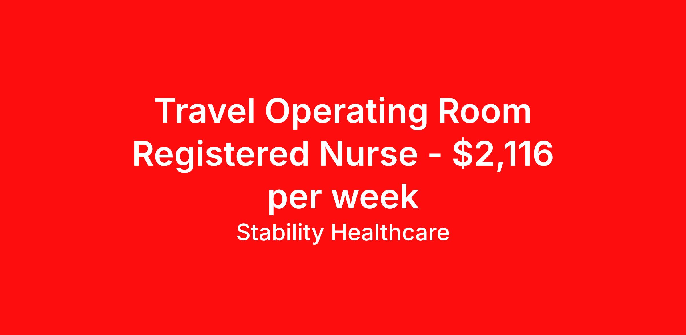 Stability Healthcare is seeking a travel nurse RN OR - Operating Room for a travel nursing job in Savannah, Georgia. Job Description & Requirements Specialty: OR - Operating Room Discipline: RN Duration: 13 weeks 40 hours per week Shift: 10 hours, days Employment Type: Travel Stability Healthcare is looking for a OR RN contract position in Savannah, GA. Also known as perioperative nurses, operating room (OR) nurses provide care for patients before, during, and after surgical procedures. Perioperative nurses work in every type of healthcare facility. *$600 travel bonus *Day 1 health insurance with United Healthcare *PTO plan start accruing on day 1, use during contract or cash out at the end! *Guaranteed stipend if facility calls you off *Extra hour bonus earn an additional hourly bonus for working over your weekly contracted hours Stability Job ID 827375. Pay package is based on 10 hour shifts and 40 hours per week (subject to confirmation) with tax-free stipend amount to be determined. Posted job title: OR About Stability Healthcare Stability Healthcare was founded in 2009, with the mission of becoming the best Travel Nursing Agency in California. We have been rated one of the top travel nursing agencies and offer our nurses the highest paying travel nursing jobs available. We have access to the best travel assignments from 1000’s of facilities. You can start the year off in sunny California, spend the Spring in the Colorado Rockies, enjoy the Summer in the Mid-West, experience the change of seasons in Boston and New York, and hit the beaches of Florida in the winter. Our Nurses work in the best hospitals and health systems in the country. Benefits Guaranteed Hours Benefits start day 1