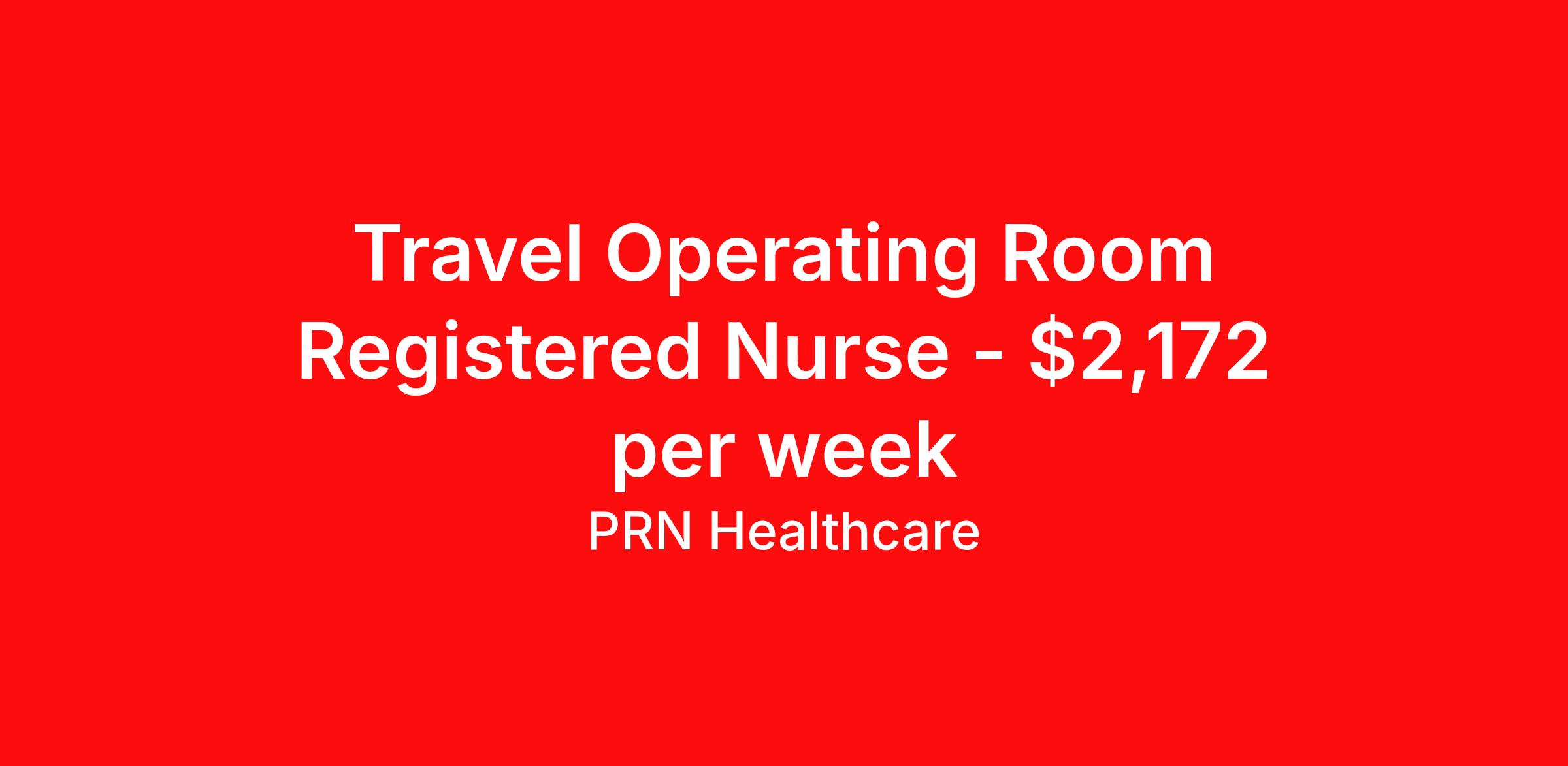 PRN Healthcare is seeking a travel nurse RN OR - Operating Room for a travel nursing job in Augusta, Georgia. Job Description & Requirements Specialty: OR - Operating Room Discipline: RN Start Date: 03/23/2026 Duration: 10 weeks 40 hours per week Shift: 8 hours, days Employment Type: Travel PRN Healthcare Job ID 1509198. Pay package is based on 8 hour shifts and 40 hours per week (subject to confirmation) with tax-free stipend amount to be determined. Posted job title: OR RN About PRN Healthcare Our story starts with a 21-year-old CNA named Pete Hietpas. Pete was diligently working in eastern Wisconsin with a variety of staffing agencies, but something was missing. He loved caring for his patients, but felt that staffing agencies were exchanging compassion for competitiveness. He was determined to change that. As a result, he started Nurses PRN in 1995 to become a model for the healthcare staffing industry – being competitive in the marketplace, yet still maintaining a compassionate heart. Over the years Nurses PRN grew and evolved as a nationwide healthcare staffing company, and therefore wanted to be more inclusive to all valued healthcare professionals: nurses, allied health, locum tenens, CNAs, and more. This lead to the introduction of PRN Healthcare, which is inclusive of Nurses PRN and all of our other healthcare divisions. Our mission to create authentic, meaningful relationships with our healthcare professionals helps us set them up for success in their dream assignment, whether that be a travel contract, local contract, or per diem shift. This is all driven by the simple idea that better care for our healthcare workers, leads to better patient care – and this is all supported by a dedicated internal staff. Our company culture is strongly backed by faith-based values and activities, to remind us that our success provides us the opportunity to serve and give back to our communities. This is the spirit of caregiving. This is PRN Healthcare. Benefits Weekly pay Guaranteed Hours Continuing Education 401k retirement plan Referral bonus Employee assistance programs Company provided housing options Medical benefits Dental benefits Vision benefits Life insurance