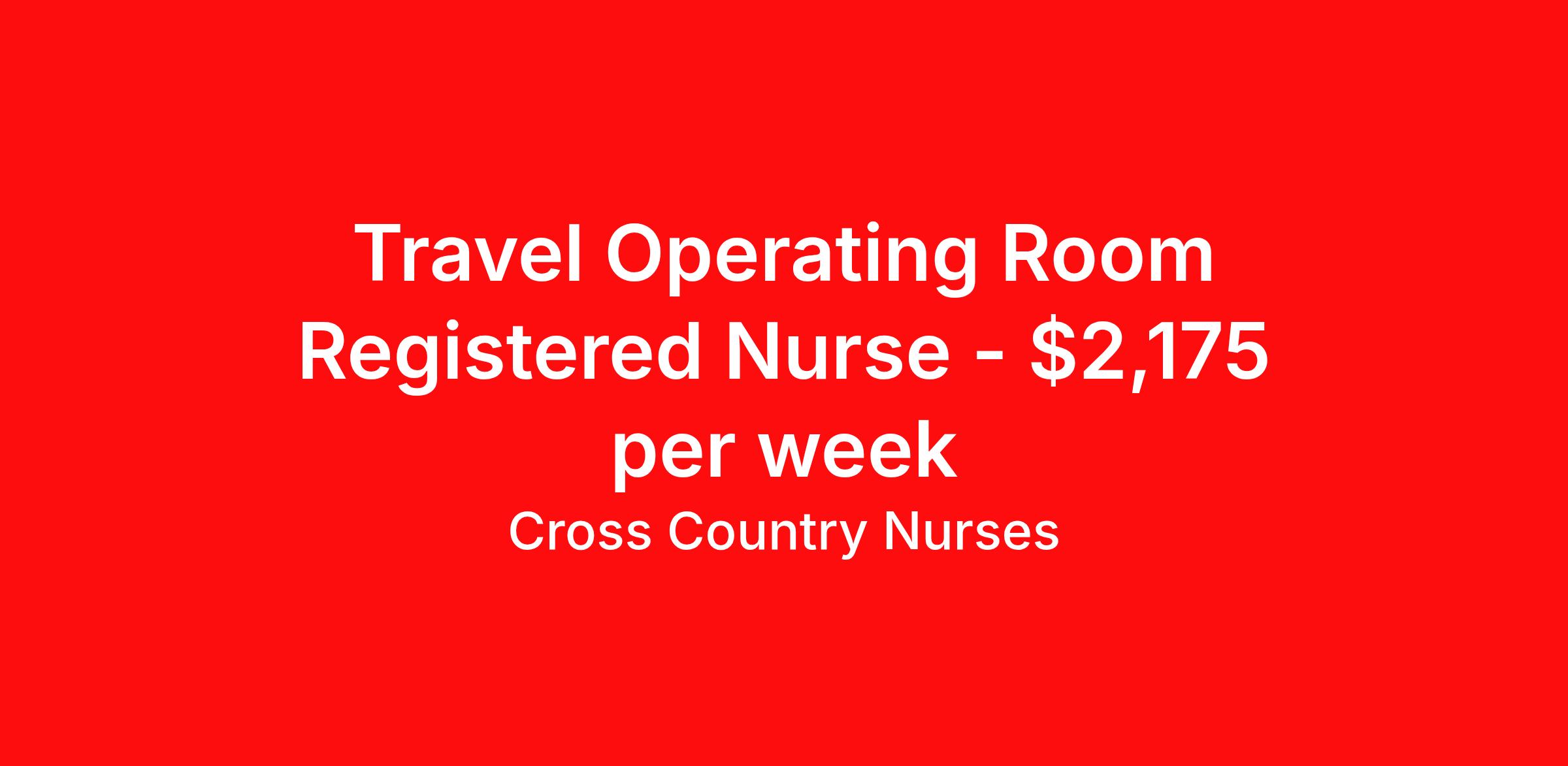 Cross Country Nurses is seeking a travel nurse RN OR - Operating Room for a travel nursing job in Atlanta, Georgia. Job Description & Requirements Specialty: OR - Operating Room Discipline: RN Start Date: 04/13/2026 Duration: 13 weeks 40 hours per week Shift: 10 hours, days Employment Type: Travel Job Description As an operating room nurse (RN OR), you will manage the care of patients before, during, and after surgery. Working primarily within the operating suite, you will frequently be responsible for preparing the patient, handling and preparing operating instruments and equipment, monitoring patient status, and assisting surgeries as necessary. As a part of your duties, you will provide pre- and post-op education to patients and their families. Minimum Requirements At least 1 year of recent acute care experience in specialty Active RN license Benefits The benefits of taking a travel nursing job with Cross Country include: Private housing or generous housing allowance Comprehensive health insurance with prescription coverage Dependent health insurance with prescription coverage Competitive salaries Referral bonuses Travel reimbursement 401(k) retirement plan Direct deposit/free checking Unlimited free CE credits Cross Country Job ID 1234168. Pay package is based on 10 hour shifts and 40 hours per week (subject to confirmation) with tax-free stipend amount to be determined. Posted job title: Registered Nurse / Operating Room About Cross Country Nurses You care for others — we’re here to care for you. At Cross Country, we know travel nursing is about more than just the job. It’s about building a career that supports your lifestyle, your values, and your impact. We offer competitive pay, full benefits, and 24/7 support from a team that truly understands what it means to be on the front lines. Wherever your journey takes you, we’re with you every step of the way. Let’s build your best life — one assignment at a time. Benefits 401k retirement plan Referral bonus