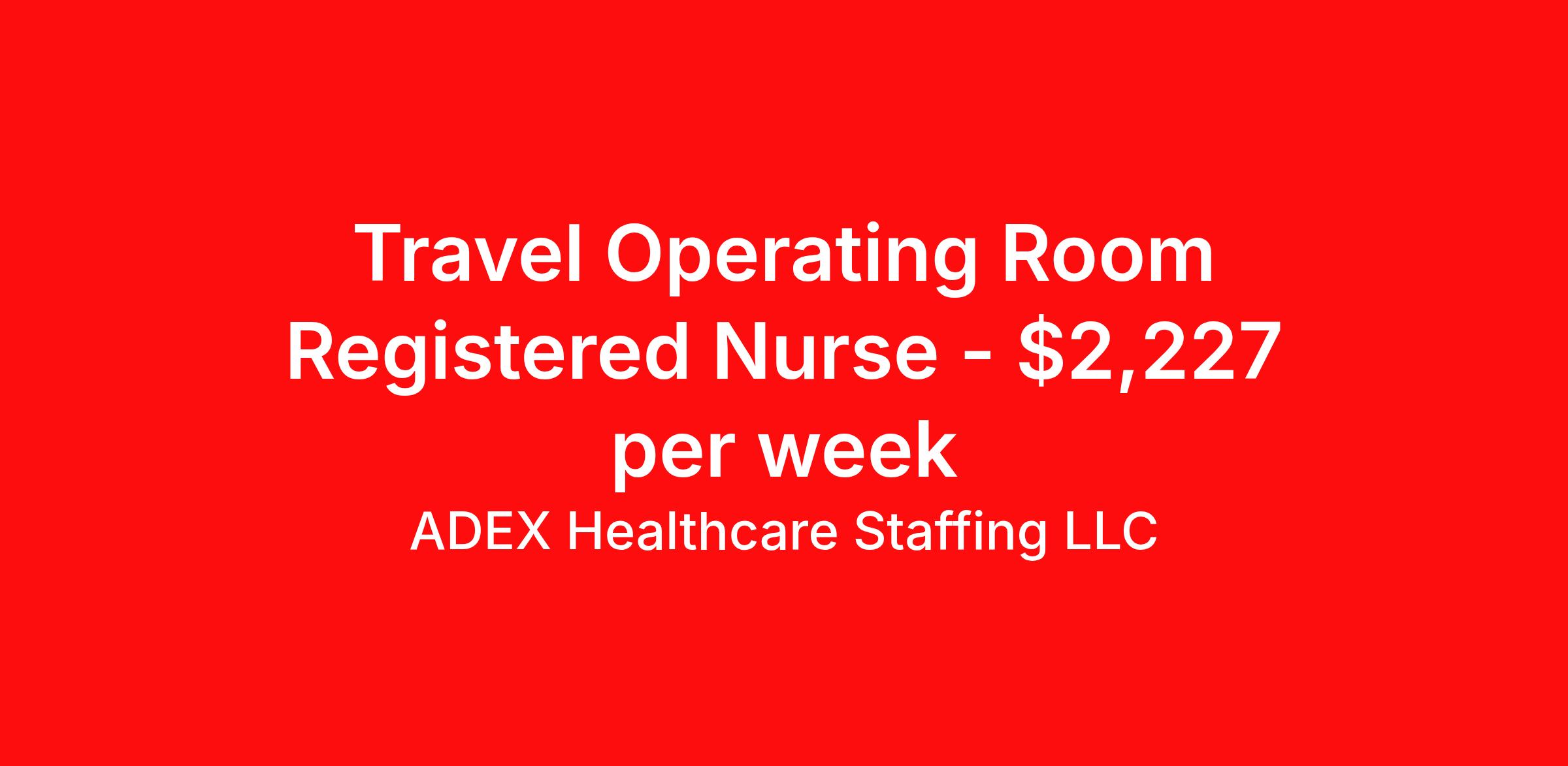ADEX Healthcare Staffing LLC is seeking a travel nurse RN OR - Operating Room for a travel nursing job in Atlanta, Georgia. Job Description & Requirements Specialty: OR - Operating Room Discipline: RN Start Date: 04/13/2026 Duration: 13 weeks 40 hours per week Shift: 10 hours, days Employment Type: Travel RN Position Job Notes: Travel or Local Registered Nurse needed for ASAP start. A minimum of 2 years of recent hospital bedside experience is required. Candidates must be able to start within 5 weeks. Opportunity for extension upon successful completion of the initial assignment. $750 referral bonus available. Opportunity: RN - OR Job Details: • Work day shifts from 6:45 AM to 5:15 PM • 13-week assignment duration • Minimum 2 years of experience within OR specialty required • BLS certification required • ACLS certification preferred • Work in multispecialty outpatient surgery center • Support various surgical specialties including orthopedics, plastics, robotics, and gynecology • Extended recovery capability available • No local candidates within 50 miles will be considered Facility: This healthcare organization operates a comprehensive multispecialty outpatient surgery center offering advanced surgical services across multiple specialties. The facility specializes in orthopedic, plastic, robotic, and gynecological procedures with extended recovery capabilities to ensure optimal patient care. The surgical center maintains modern equipment and technology to support diverse surgical needs while providing a collaborative environment for healthcare professionals. Location: Atlanta, GA Atlanta offers an exciting metropolitan experience with world-class dining, entertainment, and cultural attractions, making it one of the most vibrant cities in the Southeast. The city provides excellent career opportunities and a diverse community atmosphere while maintaining a reasonable cost of living compared to other major metropolitan areas. Adex Job ID 126290. Pay package is based on 10 hour shifts and 40 hours per week (subject to confirmation) with tax-free stipend amount to be determined. About ADEX Healthcare Staffing LLC ADEX has been placing healthcare professionals across the US since 2004. Originally founded in Atlanta, GA, the company's headquarters are now located in Tampa, FL. JCAHO certified since 2009. Benefits Referral bonus
