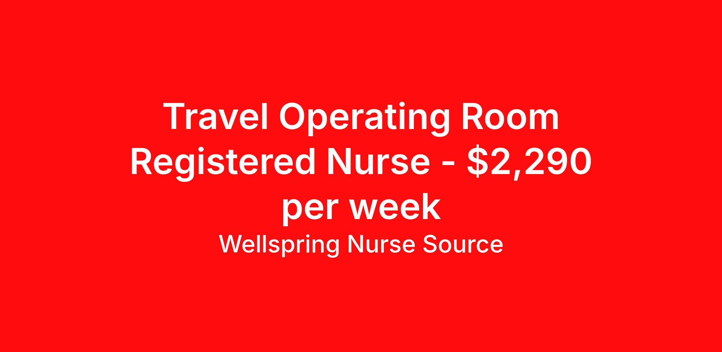 Wellspring Nurse Source is seeking a travel nurse RN OR - Operating Room for a travel nursing job in Huntington, West Virginia. Job Description & Requirements Specialty: OR - Operating Room Discipline: RN Start Date: 04/06/2026 Duration: 13 weeks 36 hours per week Shift: 12 hours, days Employment Type: Travel Assess patients condition before surgery. Ensure that the Operating Room is prepared with all necessary supplies, implants, instrumentation, and equipment. Keep the operating room sterilized. Pass medical instruments to the surgeons during operation. Monitor patient’s vital signs. Evaluate postoperative patients. Reviews charts for completeness, in accordance with documentation protocols prior to and after the surgical procedure. Adhere to all relevant health and safety standards. Wellspring Nurse Source Job ID 36119173. Pay package is based on 12 hour shifts and 36.0 hours per week (subject to confirmation) with tax-free stipend amount to be determined. Posted job title: RN OR About Wellspring Nurse Source Wellspring is nurse owned and operated which means that we get you, we stand behind you, and we advocate for you. We are 100% committed to helping you find your best job at the best rate. We are unwavering in our commitment to supporting our clinicians on every step of their travel adventure, assisting with everything from onboarding and payroll to on-the-job clinical support with a dedicated Clinician Success Team. You’re not just a number at Wellspring, you’re a valued member of our family. Join us and experience the Wellspring difference.
