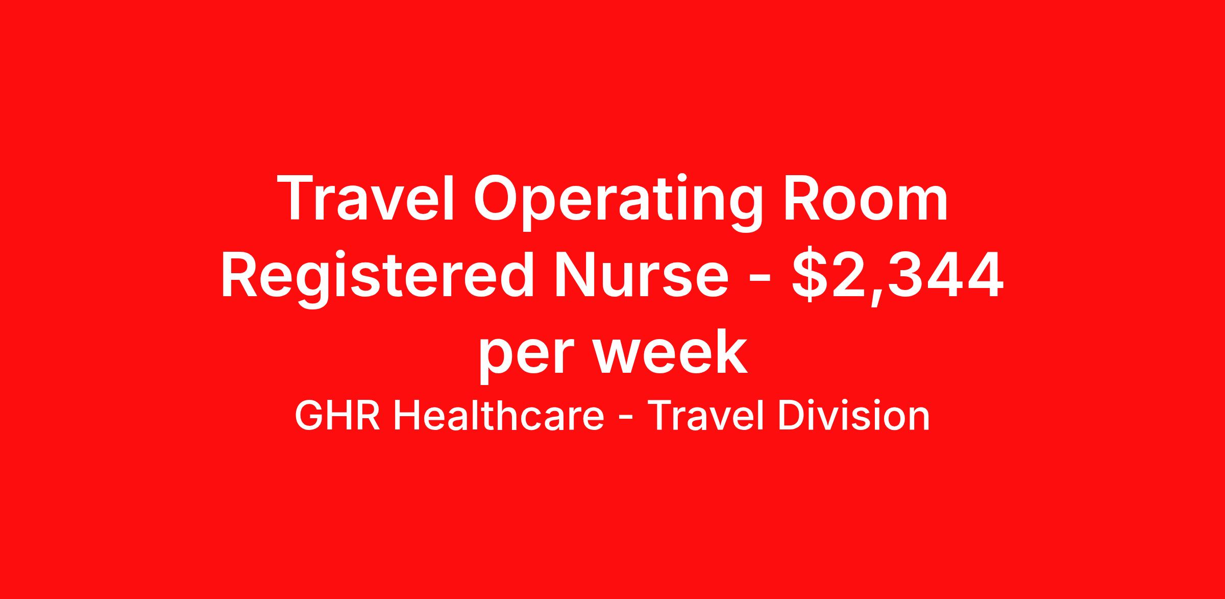 GHR Healthcare - Travel Division is seeking a travel nurse RN OR - Operating Room for a travel nursing job in Springfield, Illinois. Job Description & Requirements Specialty: OR - Operating Room Discipline: RN Start Date: 04/13/2026 Duration: 13 weeks 36 hours per week Shift: 12 hours Employment Type: Travel GHR Healthcare - Travel Division Job ID 76339884. Pay package is based on 12 hour shifts and 36 hours per week (subject to confirmation) with tax-free stipend amount to be determined. About GHR Healthcare - Travel Division For over 30 years, GHR Healthcare has been the bridge between healthcare professionals and the facilities that need them nationwide. We're committed to uncovering your ideal fit, supported by GHR's dedication to competitive compensation, transparent communication, and a devoted team that genuinely cares about your career journey. You can trust us to stand by your side as your advocate, confidante, and partner in advancing your career. At GHR, care and consideration are at the heart of everything we do. Visit ghrhealthcare.com to learn more.