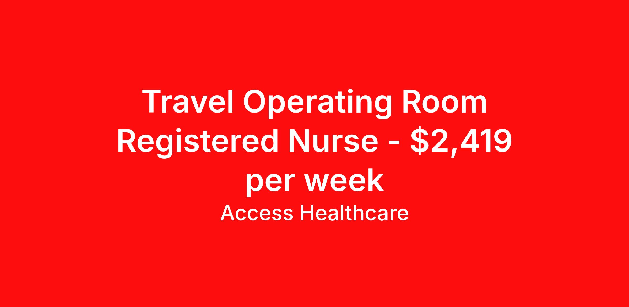 Access Healthcare is seeking a travel nurse RN OR - Operating Room for a travel nursing job in Louisville, Kentucky. Job Description & Requirements Specialty: OR - Operating Room Discipline: RN Start Date: 04/05/2026 Duration: 12 weeks 40 hours per week Shift: 8 hours, days Employment Type: Travel Access Healthcare Job ID 76306154. Pay package is based on 8 hour shifts and 40 hours per week (subject to confirmation) with tax-free stipend amount to be determined. About Access Healthcare Access Healthcare aims to provide superior service to our nursing family by providing around the clock support, competitive pay packages and an unmatched benefits package! Unlike other agencies, we offer a true family feel and work with you to find the placement that is right for you. We offer one of the top leading pay packages in the industry and we are ready to get you the money you deserve! Access Healthcare was founded by two travel nurses, Danielle and Diego, who had a dream and a shared vision of creating an agency which all nurses would want to work with. Our passion has led us to where we are today as one of the top 10 agencies in our home state of New Jersey, with access to contracts in all 50 states! We encourage you to join our team and we cannot wait to get to know you!