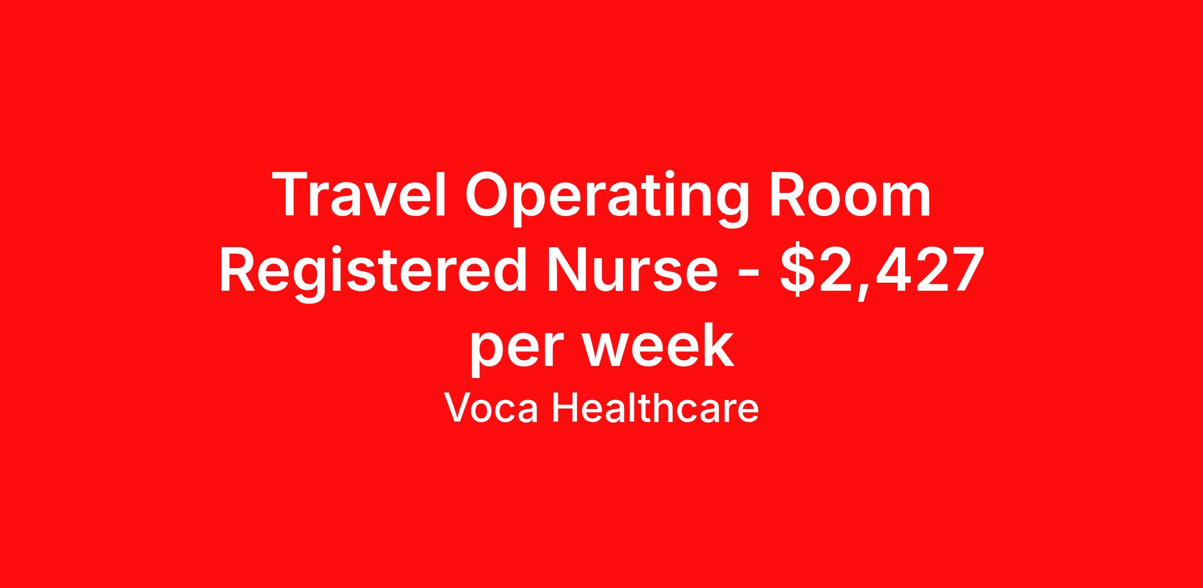 Voca Healthcare is seeking a travel nurse RN OR - Operating Room for a travel nursing job in Washington, District of Columbia. Job Description & Requirements Specialty: OR - Operating Room Discipline: RN Start Date: 03/23/2026 Duration: 13 weeks 40 hours per week Shift: 10 hours, nights Employment Type: Travel Benefits available on 1st of the month after start: Holiday pay Weekly pay Retention bonus 401k retirement plan Medical benefits Dental benefits Vision benefits Referral bonus Voca Healthcare Job ID 17927910. Pay package is based on 10 hour shifts and 40.0 hours per week (subject to confirmation) with tax-free stipend amount to be determined. Posted job title: RN:OR - Operating Room,21:00:00-07:00:00 About Voca Healthcare As a Voca Traveler, you will gain new clinical skills, visit amazing places and meet awesome healthcare professionals. As a travel health professional, your experience and dedication to patient care is in high demand throughout the United States. Whether you are a veteran traveler looking for your next opportunity, or you are looking to travel for the first time, Voca is here to support you. Voca’s experienced and dedicated travel team works in concert with you every step of the way. Our long-standing partnerships with some of the most respected and recognized healthcare organizations in the country allow us to identify career opportunities to help you increase your knowledge and experience while working with some of the best physicians and healthcare professionals in the world. At Voca, we strongly believe a better career results in a happier you. We are here to help you find a position that is professionally and personally rewarding. Benefits Holiday Pay 401k retirement plan Medical benefits Dental benefits Vision benefits Guaranteed Hours