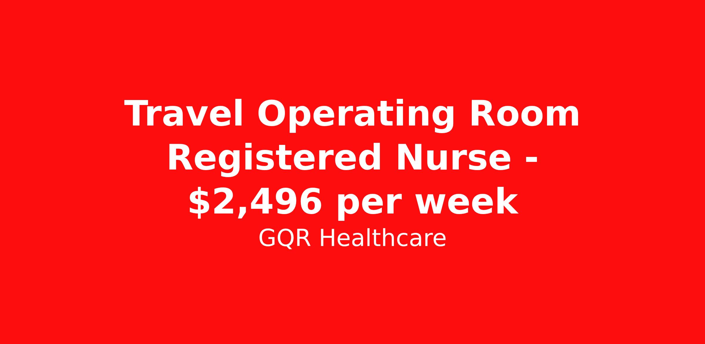 GQR Healthcare is seeking a travel nurse RN OR - Operating Room for a travel nursing job in San Francisco, California. Job Description & Requirements Specialty: OR - Operating Room Discipline: RN Start Date: 04/13/2026 Duration: 13 weeks 36 hours per week Shift: 12 hours, days Employment Type: Travel Contract - W2 Operating Room (OR) Registered Nurse (RN) Job Location: San Francisco, California Start Date: April 13, 2026 Profession: Registered Nurse (RN) Facility: Estimated Pay: $2495.81 - $2590.81 Duration:13 weeks Specialty:Operating Room (OR) Shift: Day Shift Details: null Day Job Type: Travel *Estimated weekly pay includes projected hourly wages and weekly meal and lodging per diems for eligible clinicians based on nationally published GSA rates. Actual weekly pay and per diems may differ from the amount shown and are subject to change during an assignment. Benefits: Day 1 Insurance Cigna medical, MetLife dental and vision insurance License reimbursement for new licenses needed for each assignment Discounts with hotels and rental cars A dedicated recruiter and support team that will help you every step of the way to sure you start on time and have an exceptional experience Referral bonus up to $700 About the Company: Finding the right role is about more than just matching skills to a job—it’s about aligning with your goals, values, and the way you want to work. As an award-winning talent partner, we support healthcare professionals through every step of that process, offering meaningful opportunities, clear guidance, and long-term partnership. From our first conversation to your first day on the job (and beyond!), we’re here to help you move forward with confidence. GQR Job ID 789382. Pay package is based on 12 hour shifts and 36 hours per week (subject to confirmation) with tax-free stipend amount to be determined. Posted job title: Registered Nurse (RN) About GQR Healthcare GQR’s Healthcare team specializes in connecting experts within the industry to highly skilled healthcare professionals across the US market. In the competitive healthcare market, we recognize that the industry’s common goals of improved quality of care and patient outcomes are wholly reliant upon the professionals directly supporting these initiatives. Leveraging our extensive candidate network, we deliver continuity of care for the communities our partners serve to ensure the patient experience is of the highest quality. Through deep market specialization and a unique approach to talent acquisition, GQR Healthcare provides an unparalleled and personalized experience across all medical specialties in nursing and within diverse healthcare platforms across the industry.