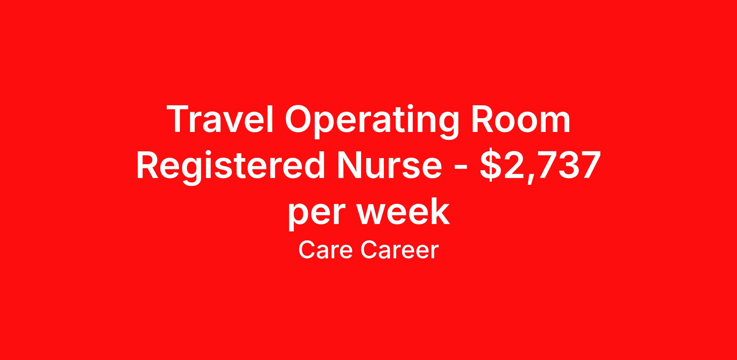 Care Career is seeking a travel nurse RN OR - Operating Room for a travel nursing job in Columbus, Ohio. Job Description & Requirements Specialty: OR - Operating Room Discipline: RN Start Date: 04/20/2026 Duration: 13 weeks 40 hours per week Shift: 10 hours, days Employment Type: Travel Operating Room Nurses Responsible for planning, executing, directing and evaluating, direct and indirect nursing care given to the surgical patient. The nursing activities may include preoperative, intra-operative and postoperative evaluation. Operating Room Nurses may be employed in several roles including scrub, circulating or function in both roles. Care Career Job ID 36060604. Pay package is based on 10 hour shifts and 40.0 hours per week (subject to confirmation) with tax-free stipend amount to be determined. Posted job title: RN OR About Care Career Care Career brings together a portfolio of leading healthcare staffing organizations, each delivering specialized talent solutions across the industry. Wherever you want to go, We Make It Happen. With travel nursing jobs across the country, you can discover the possibilities that create the lifestyle and financial position that you have dreamed of. Care Career is a modern, transparent staffing firm creating the ultimate community of US. Benefits Referral bonus Weekly pay Medical benefits Continuing Education Dental benefits Vision benefits