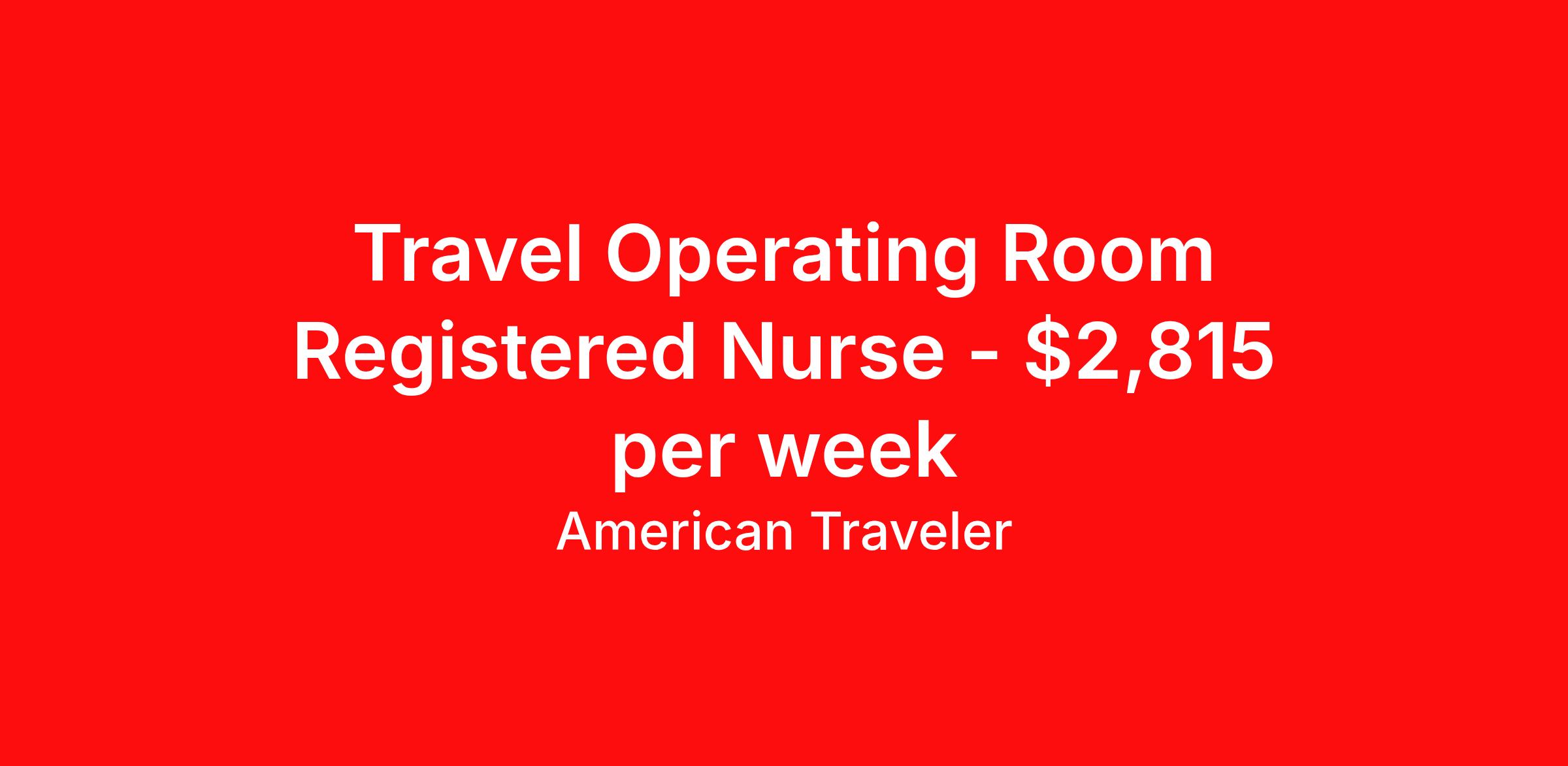 American Traveler is seeking a travel nurse RN OR - Operating Room for a travel nursing job in Worcester, Massachusetts. Job Description & Requirements Specialty: OR - Operating Room Discipline: RN Start Date: 04/08/2026 Duration: 13 weeks 40 hours per week Shift: 8 hours, days Employment Type: Travel Assignment Overview Shift: Days, 5x8hrs Hours: 40 hrs/wk Start Date: Apr 8, 2026 Length: 13 weeks Openings: 1 Description American Traveler is hiring a travel RN for an Operating Room position in Worcester, MA, requiring broad surgical scrub and circulate experience across multiple specialty areas including transplant, neuro, and trauma. Details Hospital-based Operating Room setting in Worcester, MA Day shift schedule, 5x8-hour shifts (12:45–21:15) On-call rotation required: 1 night every third weekend Specialty areas include Transplant (Liver and Kidney), Endo, Vascular, Vascular Emergencies, Neuro, Trauma (MVA, GSW, stabbings), Cardiac (circulate hearts), General Surgery, Pediatric, and Micro Requirements Active MA RN license required; permanent license preferred, conditional license accepted Must have both scrub and circulate experience across multiple surgical specialties Ability to scrub and circulate in all listed specialty areas is required for consideration Two professional references required for consideration, at least one must be from a Nurse Manager or higher Clean nursing license with no prior disciplinary actions required Candidates must reside more than 200 miles from the facility to qualify for travel pay rates Additional Information A mandatory pass/fail medication exam is administered during in-person orientation — only one attempt is allowed, and failure results in immediate contract cancellation; study materials will be provided A pass/fail EKG test is also required as part of orientation 13-week contract American Traveler Job ID P-680977. Pay package is based on 8 hour shifts and 40 hours per week (subject to confirmation) with tax-free stipend amount to be determined. Posted job title: Travel RN - Operating Room About American Traveler With over 25 years of experience, American Traveler has established a reputation for outstanding customer service. Our team ensures a smooth, worry-free experience for those starting on or expanding their travel nursing and allied careers. With thousands of travel nursing and allied jobs nationwide, our attentive and approachable recruiters find positions that align perfectly with your career aspirations and personal requirements. American Traveler offers exceptional benefits, including premium medical, dental, vision and life insurance beginning day one of your assignment, generous 401(k) match, substantial housing stipends, and more. Additionally, with 24/7 support and access to our in-house clinicians, you are assured confidence and comfort throughout your assignment. With our team behind you, you can relax and enjoy a rewarding travel career.