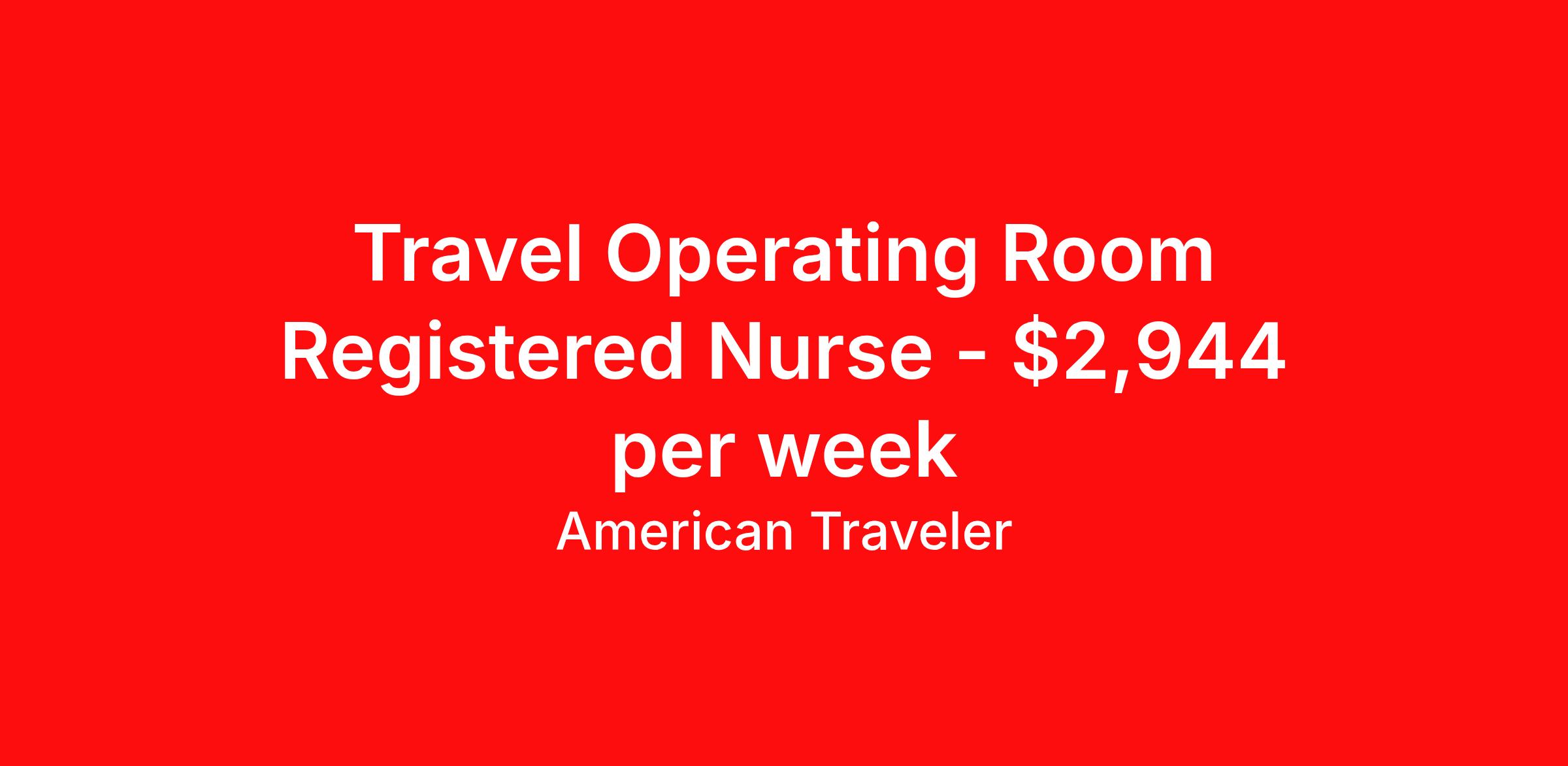 American Traveler is seeking a travel nurse RN OR - Operating Room for a travel nursing job in Chicago, Illinois. Job Description & Requirements Specialty: OR - Operating Room Discipline: RN Start Date: ASAP Duration: 13 weeks 40 hours per week Shift: 8 hours, evenings Employment Type: Travel Assignment Overview Shift: Evenings, 5x8hrs Hours: 40 hrs/wk Start Date: Mar 17, 2026 Length: 13 weeks Openings: 1 Description American Traveler is hiring an experienced RN for an Operating Room position requiring Level 1 trauma experience and an active IL RN license. Details Work in the Operating Room of a Level 1 Trauma hospital setting Specializes in Ortho, Ortho Trauma, Vascular, Urology, and General Surgery cases Preferred experience with Neurosurgery, Open Heart/Thoracic, Ophthalmology, ENT, Bariatric, and Gynecology Evening shift schedule with five 8-hour shifts from 2:30pm to 11:00pm Weekend coverage required every other weekend Mandatory on-call one 12-hour shift per month on a Saturday or Sunday Mandatory floating to other units within scope and to other facilities within a 50-mile radius as needed Uses Cerner electronic medical record system Navy blue scrubs provided Requirements Active Illinois RN license required prior to consideration Basic Life Support (BLS) certification required Minimum of 2 years recent acute care operating room experience Strong scrub and circulate skills are required Level 1 trauma experience required Experience in Ortho, Ortho Trauma, Vascular, Urology, and General Surgery required Must be able to float to different units and facilities as needed Proof of COVID vaccination required Local candidates preferred and must live within a 75-mile radius Additional Information Duties include circulating and scrubbing for a variety of surgical specialties and trauma cases Opportunity to work within a diverse surgical team with exposure to advanced procedures Team-based model used when floated outside primary competency Strict compliance with onboarding and health requirements including timely lab work RTO limited to 5 total days with no more than 2 consecutive days; no weekend or holiday RTO approved No block scheduling or special scheduling requests allowed American Traveler Job ID P-671086. Pay package is based on 8 hour shifts and 40 hours per week (subject to confirmation) with tax-free stipend amount to be determined. Posted job title: Travel RN - Operating Room About American Traveler With over 25 years of experience, American Traveler has established a reputation for outstanding customer service. Our team ensures a smooth, worry-free experience for those starting on or expanding their travel nursing and allied careers. With thousands of travel nursing and allied jobs nationwide, our attentive and approachable recruiters find positions that align perfectly with your career aspirations and personal requirements. American Traveler offers exceptional benefits, including premium medical, dental, vision and life insurance beginning day one of your assignment, generous 401(k) match, substantial housing stipends, and more. Additionally, with 24/7 support and access to our in-house clinicians, you are assured confidence and comfort throughout your assignment. With our team behind you, you can relax and enjoy a rewarding travel career.