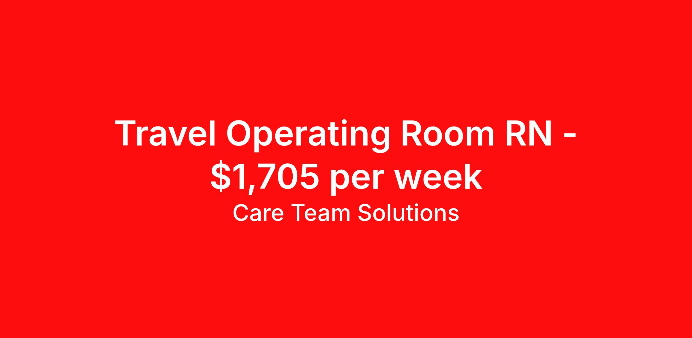 Care Team Solutions is seeking a travel nurse RN OR - Operating Room for a travel nursing job in Charleston, South Carolina. Job Description & Requirements Specialty: OR - Operating Room Discipline: RN Start Date: 04/06/2026 Duration: 13 weeks 36 hours per week Shift: 12 hours Employment Type: Travel Registered Nurse must have 2 years of recent experience in particular specialty Details: Must Have 2 Years of recent Operating Room experience. Specialty: Operating Room Discipline: Registered Nurse Start Date: 2026-04-06 Duration: 13 Weeks Shift: 12 Hours Day shift Hours Per Week: 36 Hours Employment Type: Contract Gross Weekly Pay: $1704.52 Six things that won’t happen if you apply to this job: You won’t have to guess what the downsides are. We’ll tell you up front. You won’t show up on day 1 and find out this is not what you signed up for. We won't leave your phone call ringing when it's inconvenient. Business hours for you are business hours for us. You won’t get shuffled to some customer service rep when a problem pops up. If we screw up something in securing your placement, we'll own it. That means it's on us to make it right. You won’t figure out your credentials alone. Our credentialing experts will walk you through it step by step. We've talked to thousands of travel nurses like you. We know you want good pay. You want to choose when you work. But the one thing nurse after nurse has said they want and don't have is someone in their corner. There's a lot in this business that’s messed up. We’re trying to be the people that fix it. You and every nurse with the guts to travel deserve it. We've worked hard for you to enjoy some one-of-a-kind benefits you'll not likely find anywhere else, because they benefit you more than they benefit us: Our early pay program Student loan reimbursement Free well-being tele-visits with a psychologist Care Team Solutions Job ID 586445. Pay package is based on 12 hour shifts and 36 hours per week (subject to confirmation) with tax-free stipend amount to be determined. Posted job title: Operating Room Registered Nurse About Care Team Solutions Two brothers who give an enormous damn. We're Justin and Kyle. Neither of us are nurses. It doesn’t take a nurse to see that the way travel nurses are treated sucks. Nursing is already hard enough. Travel nursing takes serious guts. You get the toughest assignments in places you’ve never been. Which can be fun, but it’s also stressful. You’re in your element but outside of your hometown. You can be a stranger on the team. If anyone deserves someone in their corner, it’s you. But that’s not how most agencies operate. Which is why travel nurses hate working with them. We got into this business because we saw bucket-loads of nurses moving through the "churn and burn" travel machinery. We absolutely hate that. You'll do your best work when you have the placements you want and feel fully supported in your work. We pay our people well because we want them to treat you well. Our recruiters are amazing (we picked each of them ourselves), but if you've got a problem too big for them, they can come straight to us. We work like ten feet away. The "Churners and Burners" promise you the same benefits. They might as well copy/paste them from each other. We have them too: 401k, holiday pay, healthcare, dental, travel reimbursement, etc But we've worked hard for you to enjoy some one-of-a-kind benefits you'll not likely find anywhere else, because they benefit you more than they benefit us: Our early pay program Student loan reimbursement Free well-being tele-visits with a psychologist Benefits Weekly pay Holiday Pay Guaranteed Hours 401k retirement plan Wellness and fitness programs Referral bonus Medical benefits Dental benefits Vision benefits School loan reimbursement
