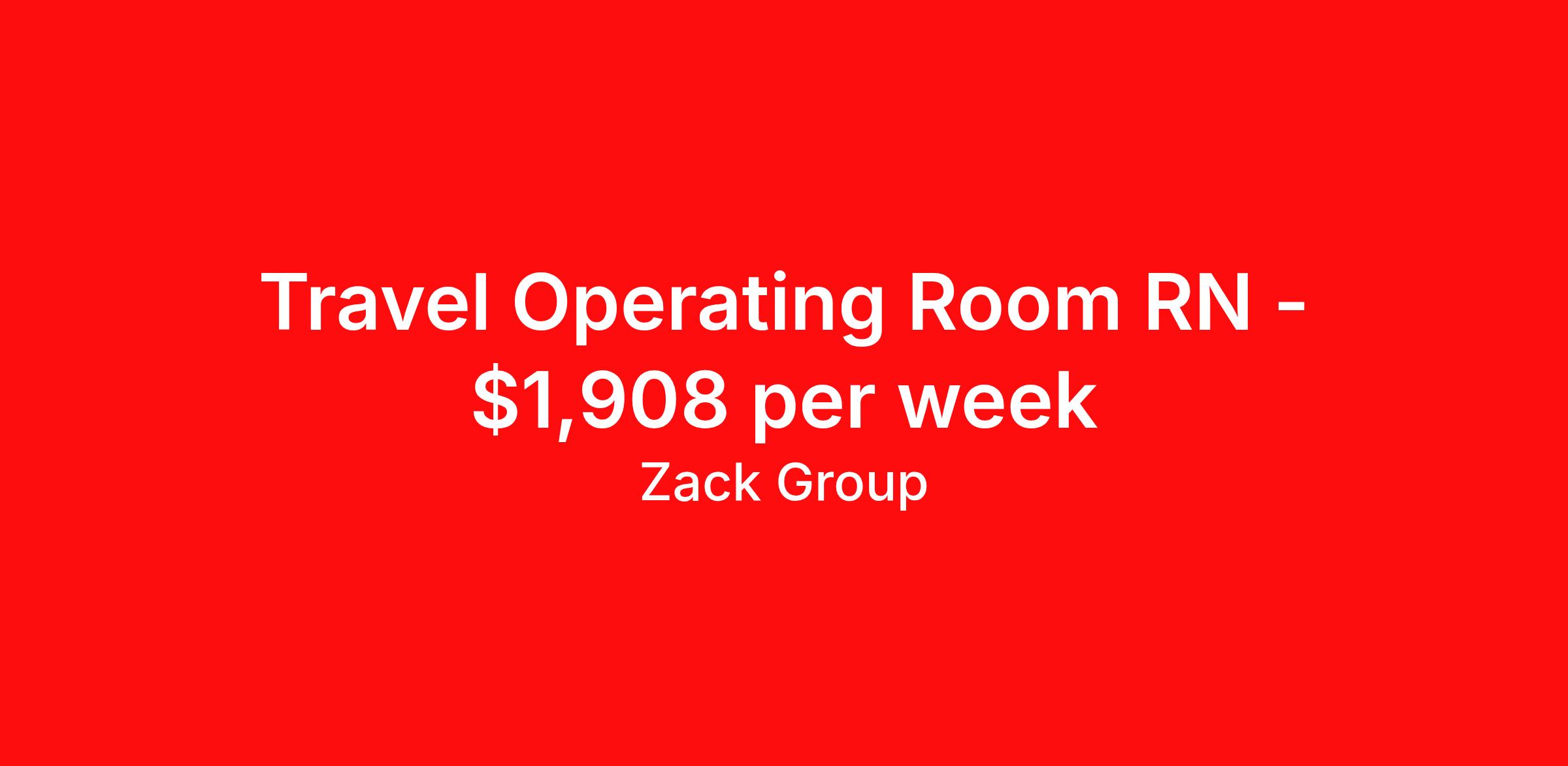 Zack Group is seeking a travel nurse RN OR - Operating Room for a travel nursing job in Charleston, South Carolina. Job Description & Requirements Specialty: OR - Operating Room Discipline: RN Start Date: 04/13/2026 Duration: 13 weeks 36 hours per week Shift: 12 hours, days Employment Type: Travel Zack Group is currently seeking OR RN’s for positions in Charleston, South Carolina. The ideal candidate will possess a current state or equivalent compact license. This is a 3x12 Days, 07:00:00-19:00:00, 12.00-3 position in the OR. Must have an active License in hand and have at least 2 years of recent OR experience as a RN . Requirements • Current Resume • Active License as an OR • Current BLS and/or ACLS and/or Specialty Certifications for OR • 2 current leadership references • Must be able to pass background/urine drug screening Compensation and Benefits We offer: • Highly competitive pay rates • Meals & Housing – Highest non-taxed available • Day 1 Health Benefits package • Weekly Pay • Teladoc, 401k and HRA/HSA • Refer a friend and earn extra cash! At Zack Group, we have your future in mind. It’s our priority! Please call or text us Today! Our Healthcare recruiters are standing by! Opt In: By providing your phone number and engaging with Lynn Care, LLC (also known as Zack Group), its affiliates, and contracted partners—including via text message, phone call, AI-generated call, AI-generated text, or email—you consent to receive communications regarding job opportunities. Message frequency may vary based on your engagement. By texting Zack Group or any associated entity, you agree to our Privacy Policy and Terms of Use ( You can reply STOP to cancel and HELP for help) Zack Group Job ID 36144182. Pay package is based on 12 hour shifts and 36.0 hours per week (subject to confirmation) with tax-free stipend amount to be determined. Posted job title: RN:OR,07:00:00-19:00:00 About Zack Group Zack Group has been active in the medical staffing sector for over 25 years, providing a wide range of services to top-tier healthcare facilities, including PRN/Per Diem, contract and permanent placement. Through its Traveling Nurse division, Zack Group places certified nursing professionals with healthcare facilities across the United States. Headquartered in Overland Park, KS, Zack Group has additional representation in Topeka and Wichita, Kansas, along with Tulsa, Oklahoma. Our local office partners with facilities throughout the Kansas, Missouri, and Oklahoma region while our travel office handles the whole country. Benefits 401k retirement plan Medical benefits Dental benefits Vision benefits
