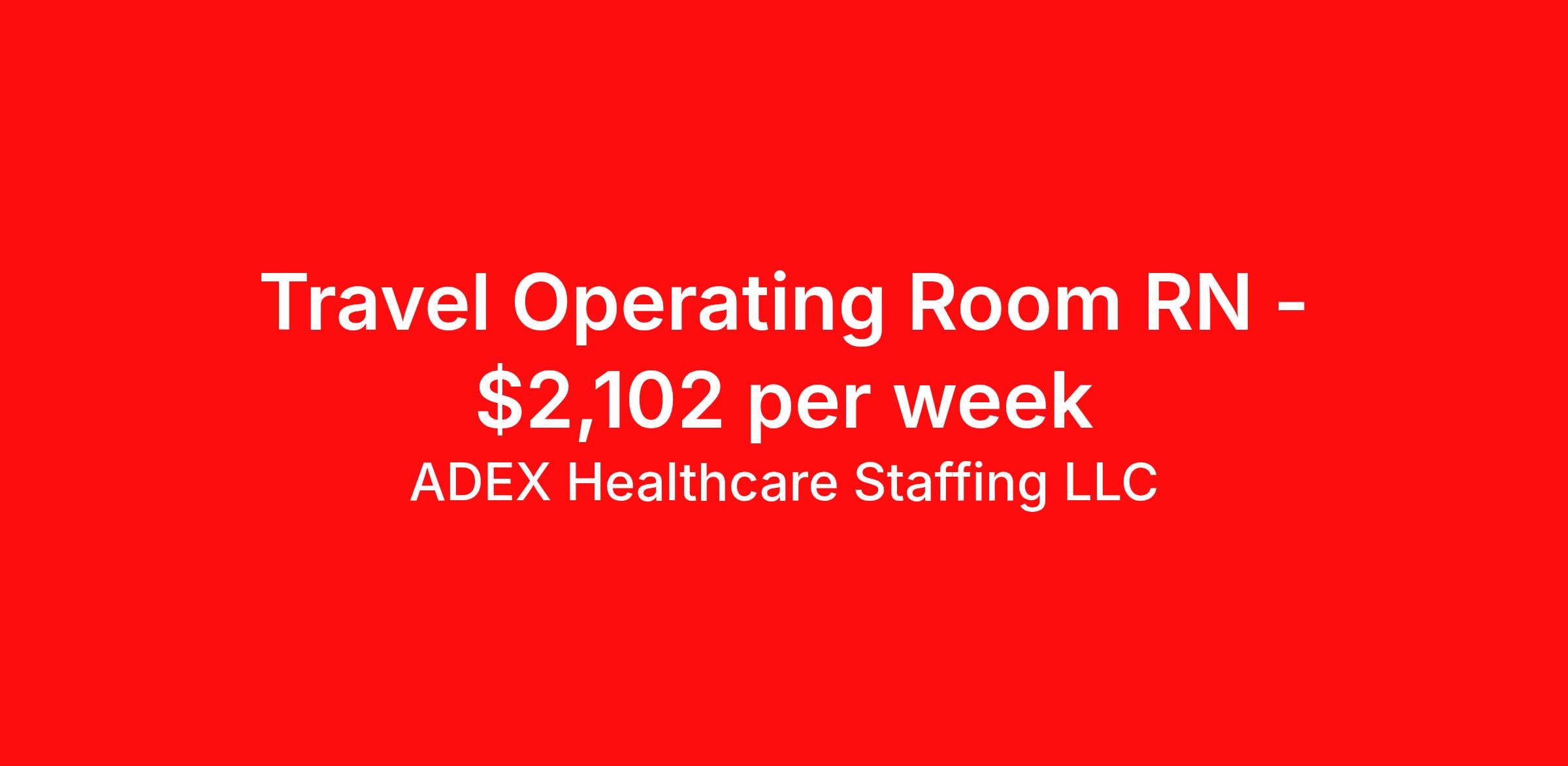 ADEX Healthcare Staffing LLC is seeking a travel nurse RN OR - Operating Room for a travel nursing job in Florence, South Carolina. Job Description & Requirements Specialty: OR - Operating Room Discipline: RN Start Date: 04/06/2026 Duration: 13 weeks 40 hours per week Shift: 10 hours, days Employment Type: Travel RN Position Job Notes: Travel or Local Registered Nurse needed for ASAP start. A minimum of 2 years of recent hospital bedside experience is required. Candidates must be able to start within 5 weeks. Opportunity for extension upon successful completion of the initial assignment. $750 referral bonus available. Opportunity: RN - OR Job Details: • Work 4x10 hour shifts from 7:00 AM to 5:00 PM • On-call required: 2 star call until 11:00 PM per week and every 3rd-4th weekend call • Weekend coverage required every 3rd to 4th weekend • Work in 12 operating rooms providing diverse surgical services • Minimum 5 years acute care operating room experience required (general, neuro, ortho, ENT, GYN) • First time travelers accepted if they have broad scope of specialty competency • South Carolina or Multi State/Compact RN license required • BLS certification required • Radiation badge required (must be provided by agency) • No floating between service lines or sister facilities • Facility may call off 1 shift per 2 weeks for guaranteed hours • Scrubs provided by facility • Epic charting system • Free parking available • Complete non-billable modules averaging 4 hours pre-start • Work with adult patient population • May be assigned to emergency response teams during hurricane season (June-November) Facility: This healthcare organization operates a 276-bed facility featuring a Level 3 trauma center with comprehensive surgical services. The facility maintains 12 operating rooms and provides advanced medical care with modern equipment and technology. The organization emphasizes quality patient care and maintains high standards for clinical excellence, serving as a major healthcare provider in the region. Location: Florence, SC Florence offers a welcoming Southern community atmosphere with rich cultural heritage and outdoor recreation opportunities. The area provides an excellent quality of life with affordable living costs, beautiful parks, and proximity to both coastal areas and major metropolitan centers, making it an attractive location for healthcare professionals. Adex Job ID 3179208. Pay package is based on 10 hour shifts and 40 hours per week (subject to confirmation) with tax-free stipend amount to be determined. About ADEX Healthcare Staffing LLC ADEX has been placing healthcare professionals across the US since 2004. Originally founded in Atlanta, GA, the company's headquarters are now located in Tampa, FL. JCAHO certified since 2009. Benefits Referral bonus