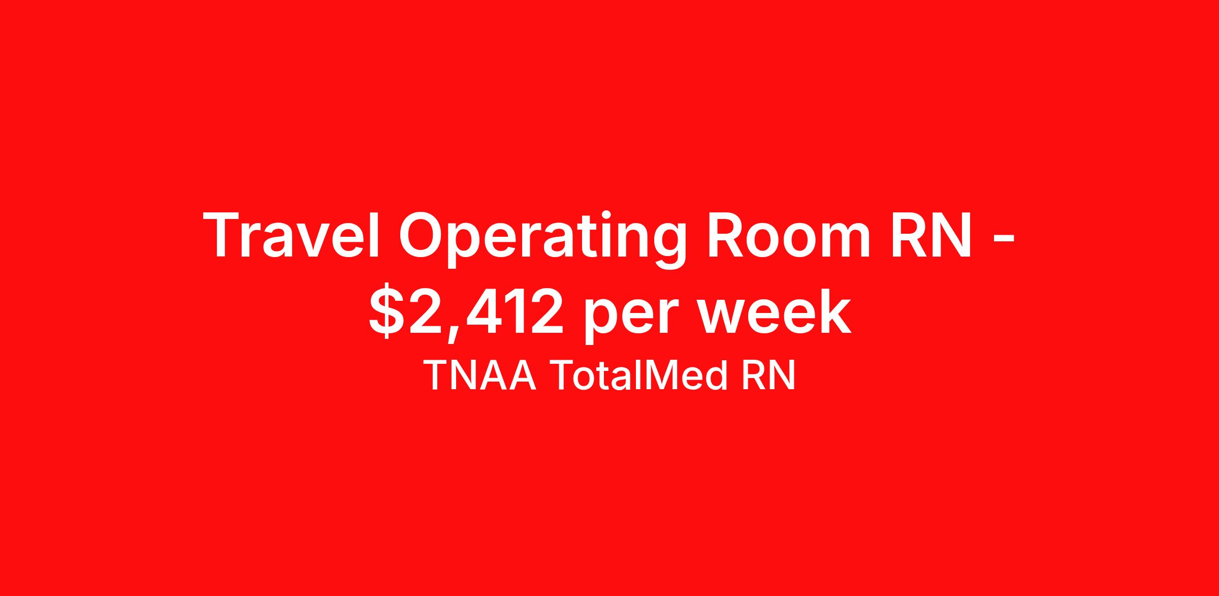 TNAA TotalMed RN is seeking a travel nurse RN OR - Operating Room for a travel nursing job in Rockport, Maine. Job Description & Requirements Specialty: OR - Operating Room Discipline: RN Duration: 13 weeks 36 hours per week Shift: 9 hours, days Employment Type: Travel We're looking for Operating Room RNs for an immediate travel nurse opening in Rockport, ME. The right RN should have 1-2 years recent acute care experience as a circulating nurse, and/or scrub nurse, and potentially RN first assistant. Read below for more requirements. As an OR Travel Nurse, you will assist physicians and medical staff in caring for surgical patients, as well as providing pre- and post-surgery care and education to the patient. Circulating OR Nurses work within the operating suite but outside of the sterile field; Scrub OR Nurses handle and prepare operating instruments and equipment within the sterile field. Surgery responsibilities may include preparing instruments for specific surgical procedures, monitoring and observing the patient during surgery, and responding to potential complications alongside the physician. As an OR Travel Nurse, you should be prepared to perform the following tasks: Provide basic bedside care. Prepare, administer and record prescribed medication, reporting any adverse reactions to treatment. Serve as the communication liaison between patients' family members and members of the operating team. Ensure that the correct procedure(s) is being performed on the correct patient. Initiate patient education plan as prescribed by physician; teach patients and families how to manage medication and home care needs. Additional duties for Circulating OR Nurses may include: Responding to comfort and safety needs of patient. Accurate care and handling of specimens. Monitoring equipment used during surgery. Inventory of surgical items pre- and post-procedure. Additional duties for Scrub OR Nurses may include: Selection and handling of surgical instruments and supplies during procedures. Inventory of surgical items pre- and post-procedure. Additional duties for RN First Assistant may include: Assist physicians by delivering direct surgical care. Help control bleeding. Suture patients following surgery. OR Travel Nurses should be able to stand and walk for long periods of time, as well as bend, lean and stoop without difficulty. RNs should be able to easily lift 20 pounds. Moving or lifting of patients may require lifting of up to 50 pounds at times. RNs may face hazards from exposure to certain chemicals or infectious diseases in the operating room environment. Requirements*: ACLS, BLS, 2 Years * Additional certifications may be required before beginning an assignment. TotalMed Travel Job ID 1391945. Pay package is based on 9 hour shifts and 36 hours per week (subject to confirmation) with tax-free stipend amount to be determined. Posted job title: Operating Room - OR RN - Travel Nurse About TNAA TotalMed RN TotalMed is a Top Ten, travel nursing and healthcare staffing agency with the mission of igniting purpose in healthcare. The organization staffs nurses, therapists, pharmacists, and other clinicians of all specialties in all 50 states. They offer local and travel jobs and match caregivers with the right organization to assist both facilities and patients. As an organization, they focus on putting highly-skilled staff into facilities to ensure adequate staffing for a better patient experience. TotalMed specializes in recruiting and placing healthcare professionals in travel, PRN, and permanent positions across the country in Nursing and Allied Health. Throughout 2020, the organization filled roles at even the most short-staffed facilities during the most challenging time in healthcare. By matching the right travel healthcare professional with the right organization, TotalMed continues to offer a lifeline to facilities and their patients. Benefits Weekly pay Guaranteed Hours Continuing Education 401k retirement plan Sick pay Wellness and fitness programs Referral bonus Employee assistance programs Medical benefits Dental benefits Vision benefits Benefits start day 1