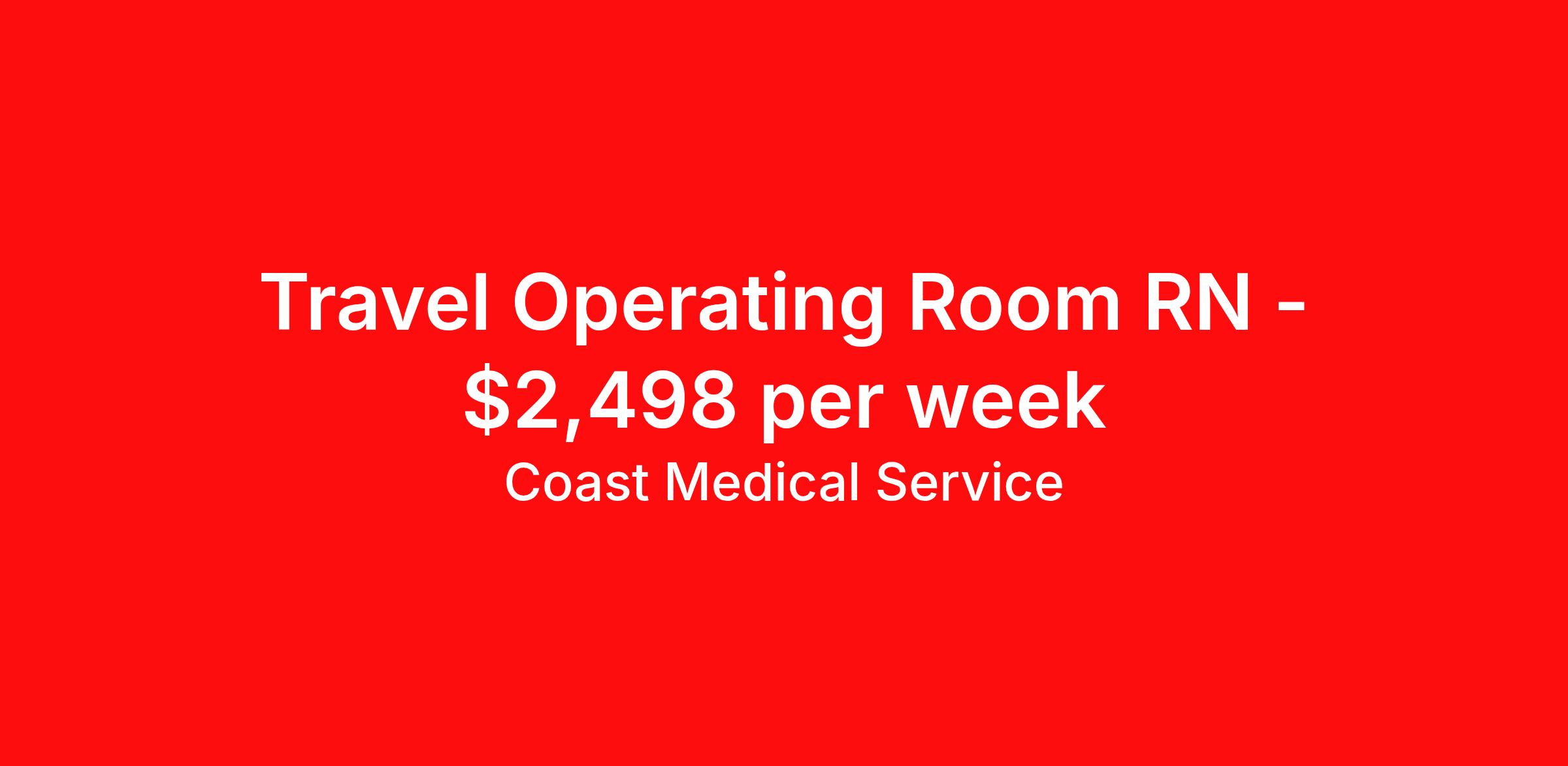Coast Medical Service is seeking a travel nurse RN OR - Operating Room for a travel nursing job in Pittsburgh, Pennsylvania. Job Description & Requirements Specialty: OR - Operating Room Discipline: RN Start Date: 04/06/2026 Duration: 13 weeks 36 hours per week Shift: 12 hours, nights Employment Type: Travel Coast Medical Service is a nationwide travel nursing & allied healthcare staffing agency dedicated to providing an elite traveler experience for the experienced or first-time traveler. Coast is featured on Blue Pipes' 2023 Best Travel Agencies and named a 2022 Top Rated Healthcare Staffing Firm & 2023 First Half Top Rated Healthcare Staffing Firm by Great Recruiters. Please note that pay rate may differ for locally based candidates. Please apply here or contact a recruiter directly to learn more about this position & the facility, and/or explore others that may be of interest to you. We look forward to speaking with you! Coast Medical Services Job ID 35920404. Pay package is based on 12 hour shifts and 36.0 hours per week (subject to confirmation) with tax-free stipend amount to be determined. Posted job title: RN:Operating Room,19:00:00-07:30:00