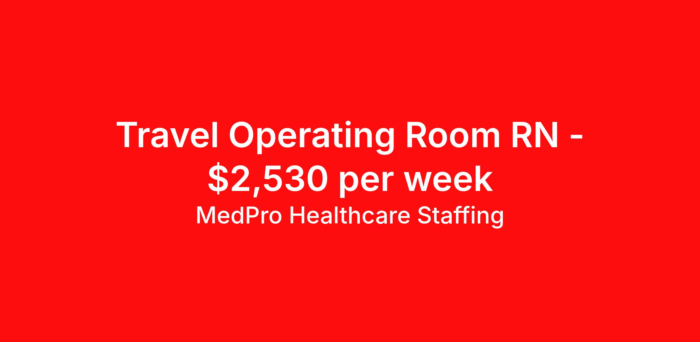MedPro Healthcare Staffing is seeking a travel nurse RN OR - Operating Room for a travel nursing job in Portland, Maine. Job Description & Requirements Specialty: OR - Operating Room Discipline: RN Start Date: 04/06/2026 Duration: 13 weeks 36 hours per week Shift: 12 hours, days Employment Type: Travel MedPro Healthcare Staffing , a Joint Commission-certified staffing agency, is seeking a quality Operating Room Registered Nurse (RN) for a travel assignment with one of our top healthcare clients. Requirements Eighteen months of recent experience in an Acute Care Surgery setting Active RN License Degree from an accredited nursing program BLS & ACLS Certifications Other requirements to be determined by our client facility Benefits Weekly pay and direct deposit Full coverage of all credentialing fees Private housing or housing allowance Group Health insurance for you and your family Company-paid life and disability insurance Travel reimbursement 401(k) matching Unlimited Referral Bonuses up to $1,000 Duties Responsibilities Operating Room / Perioperative Nurses offer the skills needed to provide surgical patient care by assessing, planning, and implementing the nursing care patients receive before, during and after surgery Provide surgical patient care by assessing, planning, and implementing the nursing care patients receive before, during and after surgery. The OR nurse / OR RN also serves as patient educator, circulating nurse and/or scrub nurse. Circulating OR nurses work within the operating suite but outside of the sterile field. Scrub OR nurses handle and prepare operating instruments and equipment within the sterile field. About Agency MedPro Healthcare Staffing is a Joint Commission certified provider of contract staffing services. Since 1983, we have placed nursing and allied travelers in top healthcare facilities nationwide. Join us today for your very own MedPro Experience®. If qualified and interested, please call for immediate consideration. MedPro Staffing is an Equal Opportunity Employer. All applicants will be considered for employment without attention to race, color, religion, national origin, age, sex, disability, marital status or veteran status. Key Words: Registered Nurse, RN, Operating Room, Scrub, Circulate, OR, Contract Nurse, Travel Nurse, Agency RN, Travel RN, Nursing, Contract, Perioperative nurse *Weekly payment estimates are intended for informational purposes only and include a gross estimate of hourly wages and reimbursements for meal, incidental, and housing expenses. Your recruiter will confirm your eligibility and provide additional details. MedPro Job ID a0Fcx00000CCx0bEAD. Pay package is based on 12 hour shifts and 36 hours per week (subject to confirmation) with tax-free stipend amount to be determined. Posted job title: Operating Room Registered Nurse Nursing: Operating Room. About MedPro Healthcare Staffing At MedPro Healthcare Staffing , we believe no one cares more for caregivers than we do. Our mission is simple: you focus on your patients, and we’ll take care of the rest. As a Joint Commission-certified leader in temporary and contract healthcare staffing since 1983, MedPro has proudly connected nursing and allied travelers with top healthcare facilities across the nation. With thousands of job opportunities available nationwide, we make it easy to find assignments that align with your goals and lifestyle. Our on-staff clinical support team—alongside a compassionate group of experienced recruiters—provides hands-on guidance every step of the way. From Day 1 medical benefits and a 401(k) plan to personalized career support, we’re committed to ensuring every professional we serve feels valued, cared for, and empowered to succeed. Guided by a CEO who is a Registered Nurse, MedPro is built on a foundation of clinical insight and genuine compassion for the caregiving community. Through The MedPro Experience® , we deliver travel assignments that are rewarding, memorable, and designed to help you DREAM big, EXPLORE often, and ACHIEVE greatness. Benefits Day 1 medical, dental, and vision benefits for you and your family Weekly pay and direct deposit Unlimited Referral Bonuses starting at $500 On Staff Clinical Support Team Access to nationwide travel assignments MPX Mobile app -24/7 real-time access to jobs, credentials, assignment details, and more Full coverage of all credentialing fees Private housing or housing allowance Tax Free Per Diems, Housing Stipends and Travel Reimbursements Company-paid life and disability insurance Travel reimbursement 401(k) matching Benefits Weekly pay Referral bonus Employee assistance programs