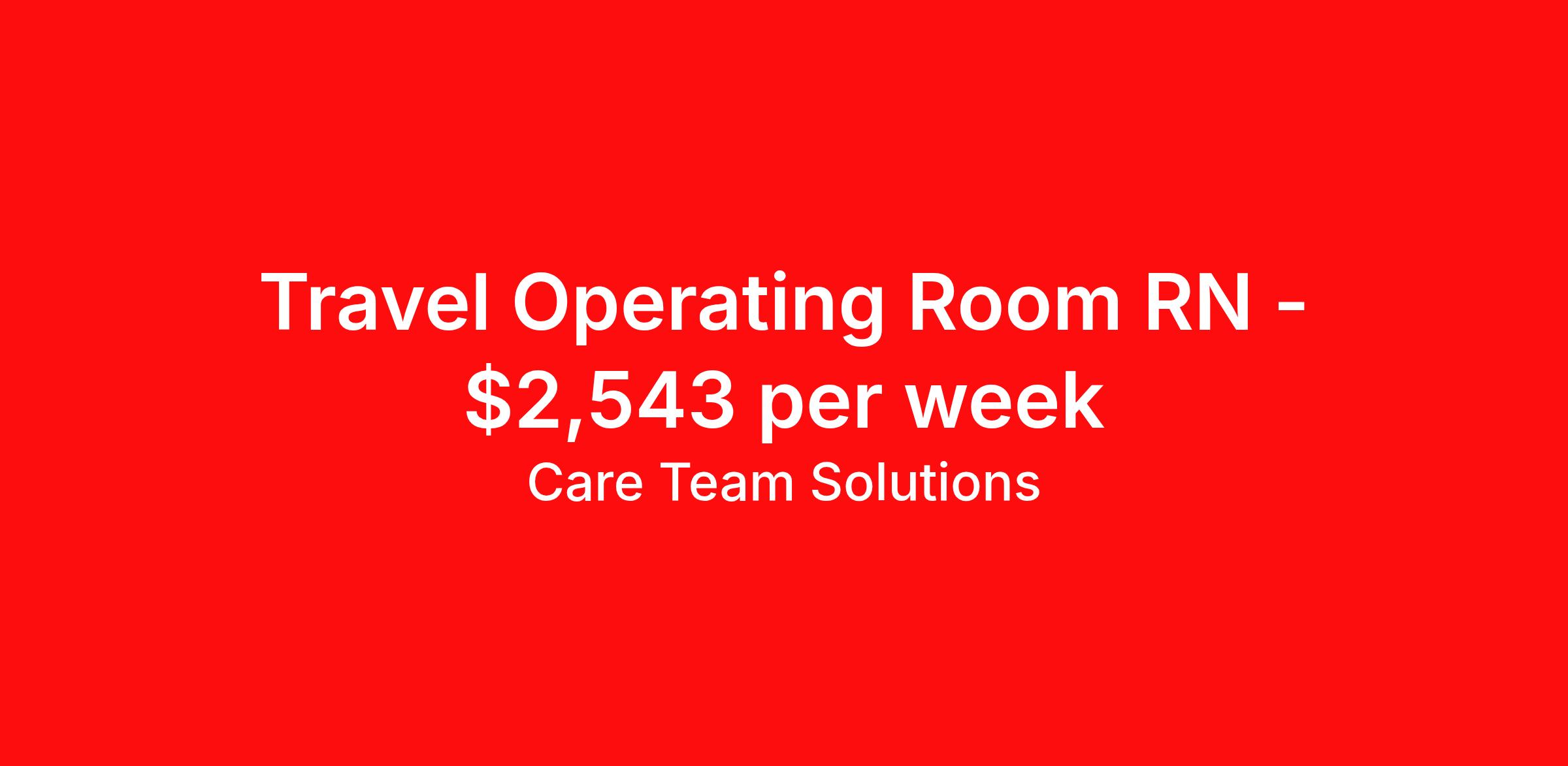 Care Team Solutions is seeking a travel nurse RN OR - Operating Room for a travel nursing job in Albany, New York. Job Description & Requirements Specialty: OR - Operating Room Discipline: RN Start Date: 04/20/2026 Duration: 13 weeks 40 hours per week Shift: 8 hours Employment Type: Travel Registered Nurse must have 2 years of recent experience in particular specialty Details: Must Have 2 Years of recent Operating Room experience. Specialty: Operating Room Discipline: Registered Nurse Start Date: 2026-04-20 Duration: 13 Weeks Shift: 10 Hours Day shift Hours Per Week: 40 Hours Employment Type: Contract Gross Weekly Pay: $2542.51 Six things that won’t happen if you apply to this job: You won’t have to guess what the downsides are. We’ll tell you up front. You won’t show up on day 1 and find out this is not what you signed up for. We won't leave your phone call ringing when it's inconvenient. Business hours for you are business hours for us. You won’t get shuffled to some customer service rep when a problem pops up. If we screw up something in securing your placement, we'll own it. That means it's on us to make it right. You won’t figure out your credentials alone. Our credentialing experts will walk you through it step by step. We've talked to thousands of travel nurses like you. We know you want good pay. You want to choose when you work. But the one thing nurse after nurse has said they want and don't have is someone in their corner. There's a lot in this business that’s messed up. We’re trying to be the people that fix it. You and every nurse with the guts to travel deserve it. We've worked hard for you to enjoy some one-of-a-kind benefits you'll not likely find anywhere else, because they benefit you more than they benefit us: Our early pay program Student loan reimbursement Free well-being tele-visits with a psychologist Care Team Solutions Job ID 587018. Pay package is based on 8 hour shifts and 40 hours per week (subject to confirmation) with tax-free stipend amount to be determined. Posted job title: AMC - Travel RN - Operating Room - Days About Care Team Solutions Two brothers who give an enormous damn. We're Justin and Kyle. Neither of us are nurses. It doesn’t take a nurse to see that the way travel nurses are treated sucks. Nursing is already hard enough. Travel nursing takes serious guts. You get the toughest assignments in places you’ve never been. Which can be fun, but it’s also stressful. You’re in your element but outside of your hometown. You can be a stranger on the team. If anyone deserves someone in their corner, it’s you. But that’s not how most agencies operate. Which is why travel nurses hate working with them. We got into this business because we saw bucket-loads of nurses moving through the "churn and burn" travel machinery. We absolutely hate that. You'll do your best work when you have the placements you want and feel fully supported in your work. We pay our people well because we want them to treat you well. Our recruiters are amazing (we picked each of them ourselves), but if you've got a problem too big for them, they can come straight to us. We work like ten feet away. The "Churners and Burners" promise you the same benefits. They might as well copy/paste them from each other. We have them too: 401k, holiday pay, healthcare, dental, travel reimbursement, etc But we've worked hard for you to enjoy some one-of-a-kind benefits you'll not likely find anywhere else, because they benefit you more than they benefit us: Our early pay program Student loan reimbursement Free well-being tele-visits with a psychologist Benefits Weekly pay Holiday Pay Guaranteed Hours 401k retirement plan Wellness and fitness programs Referral bonus Medical benefits Dental benefits Vision benefits School loan reimbursement