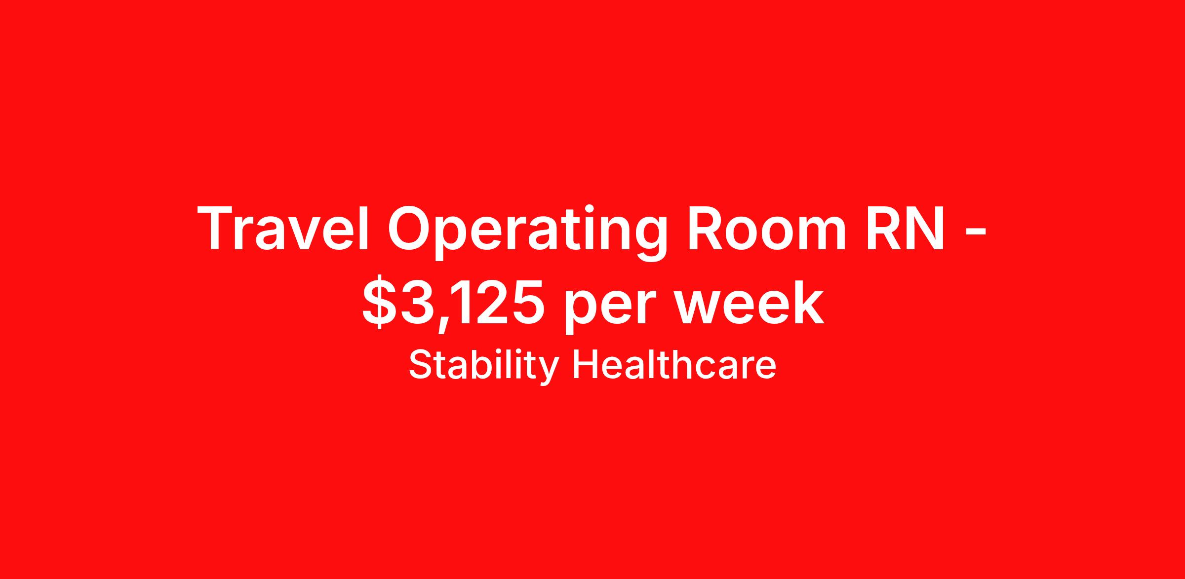 Stability Healthcare is seeking a travel nurse RN OR - Operating Room for a travel nursing job in Sitka, Alaska. Job Description & Requirements Specialty: OR - Operating Room Discipline: RN Start Date: 04/27/2026 Duration: 13 weeks 40 hours per week Shift: 10 hours, days Employment Type: Travel Stability Healthcare is looking for a OR RN contract position in Sitka, AK. Also known as perioperative nurses, operating room (OR) nurses provide care for patients before, during, and after surgical procedures. Perioperative nurses work in every type of healthcare facility. *$600 travel bonus *Day 1 health insurance with United Healthcare *PTO plan start accruing on day 1, use during contract or cash out at the end! *Guaranteed stipend if facility calls you off *Extra hour bonus earn an additional hourly bonus for working over your weekly contracted hours Stability Job ID 827822. Pay package is based on 10 hour shifts and 40 hours per week (subject to confirmation) with tax-free stipend amount to be determined. Posted job title: OR About Stability Healthcare Stability Healthcare was founded in 2009, with the mission of becoming the best Travel Nursing Agency in California. We have been rated one of the top travel nursing agencies and offer our nurses the highest paying travel nursing jobs available. We have access to the best travel assignments from 1000’s of facilities. You can start the year off in sunny California, spend the Spring in the Colorado Rockies, enjoy the Summer in the Mid-West, experience the change of seasons in Boston and New York, and hit the beaches of Florida in the winter. Our Nurses work in the best hospitals and health systems in the country. Benefits Guaranteed Hours Benefits start day 1