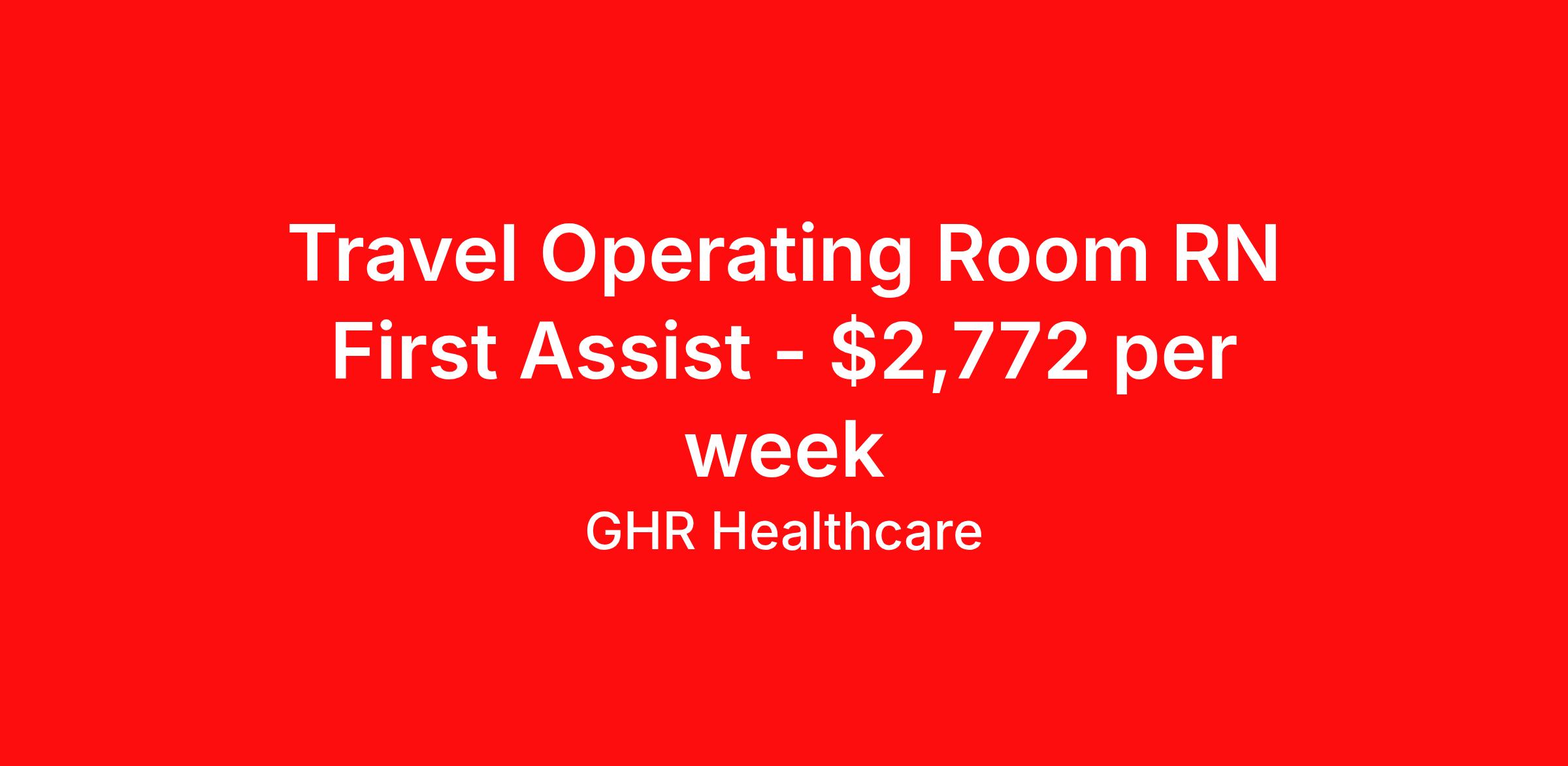 GHR Healthcare is seeking a travel nurse RN First Assist for a travel nursing job in Charleston, West Virginia. Job Description & Requirements Specialty: First Assist Discipline: RN Start Date: 04/16/2026 Duration: 13 weeks 36 hours per week Shift: 12 hours Employment Type: Travel GHR Healthcare Job ID 76247448. Pay package is based on 12 hour shifts and 36 hours per week (subject to confirmation) with tax-free stipend amount to be determined. About GHR Healthcare For over 30 years, GHR Healthcare has been the bridge between healthcare professionals and the facilities that need them nationwide. We're committed to uncovering your ideal fit, supported by GHR's dedication to competitive compensation, transparent communication, and a devoted team that genuinely cares about your career journey. You can trust us to stand by your side as your advocate, confidante, and partner in advancing your career. At GHR, care and consideration are at the heart of everything we do. Visit ghrhealthcare.com to learn more.