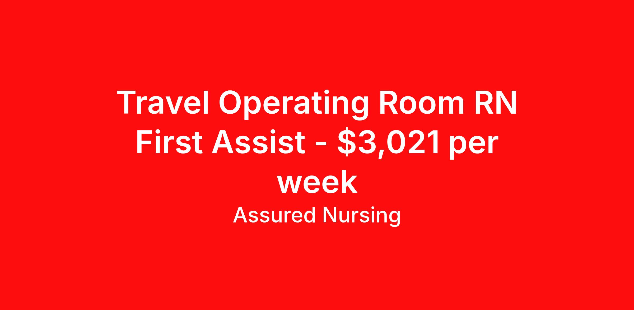 Assured Nursing is seeking a travel nurse RN First Assist for a travel nursing job in Charleston, West Virginia. Job Description & Requirements Specialty: First Assist Discipline: RN Start Date: 04/16/2026 Duration: 13 weeks 40 hours per week Shift: 8 hours, days Employment Type: Travel Assured Nursing is currently seeking a RN for a contract position in Charleston West Virginia . This is a 7a-3p, 07:00:00-15:00:00, 8.00-5 position in the OR RNFA | 42200 . The ideal candidate will possess a current state license as a RN and have at least 2 years of recent experience as a RNFA RN . Assured Nursing Job ID 35926696. Pay package is based on 8 hour shifts and 40.0 hours per week (subject to confirmation) with tax-free stipend amount to be determined. Posted job title: RN:RNFA,07:00:00-15:00:00 Benefits Weekly pay Holiday Pay 401k retirement plan Referral bonus Medical benefits Dental benefits Vision benefits