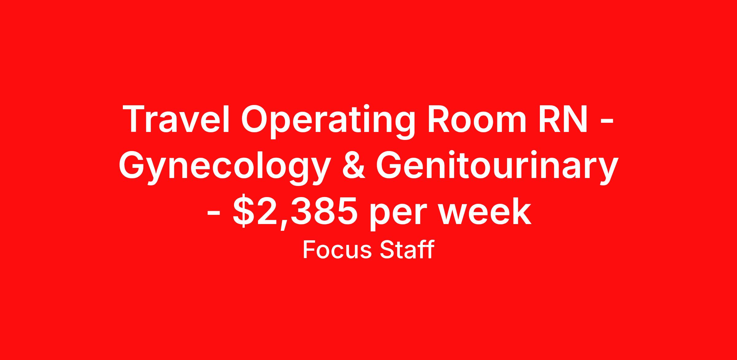 Travel Operating Room RN - Gynecology & Genitourinary - $2,385 per week