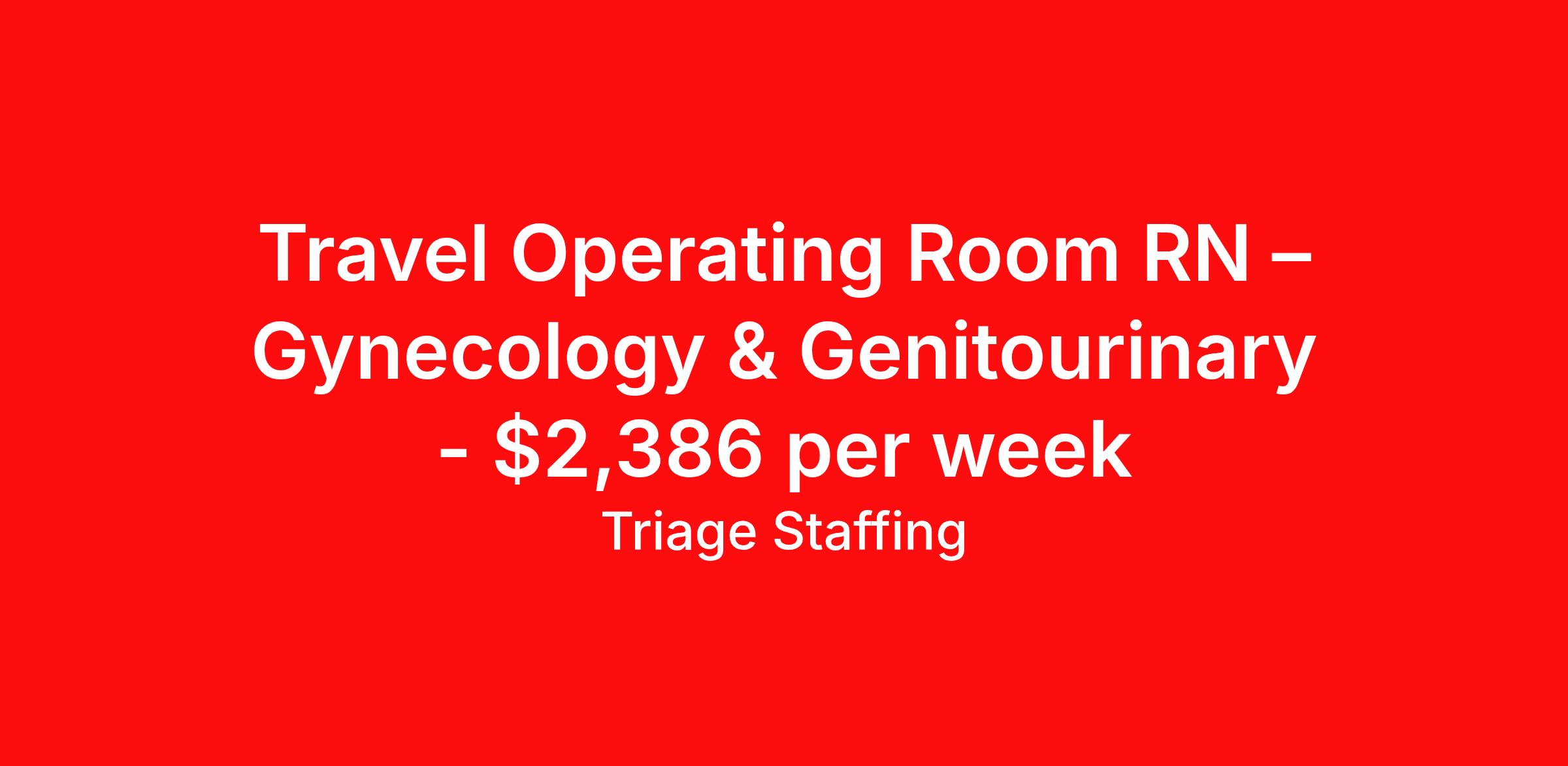 Travel Operating Room RN – Gynecology & Genitourinary - $2,386 per week
