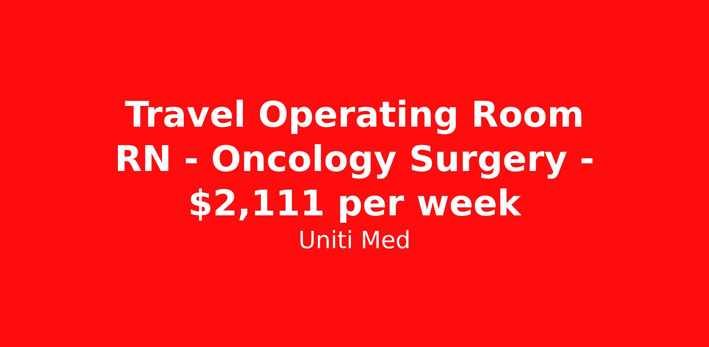 Travel Operating Room RN - Oncology Surgery - $2,111 per week