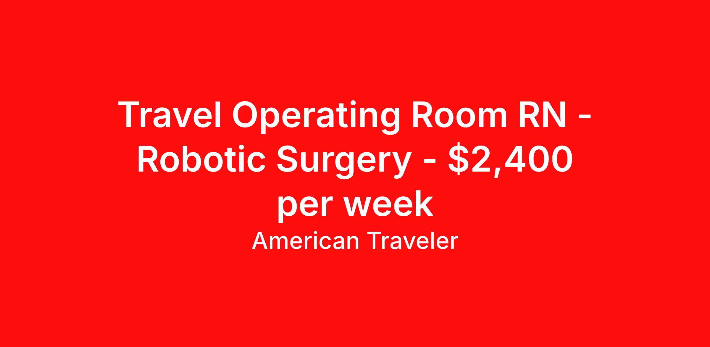 American Traveler is seeking a travel nurse RN OR - Operating Room for a travel nursing job in Montgomery, Alabama. Job Description & Requirements Specialty: OR - Operating Room Discipline: RN Start Date: 03/30/2026 Duration: 13 weeks 40 hours per week Shift: 10 hours, days Employment Type: Travel Assignment Overview Shift: Days, 4x10hrs Hours: 40 hrs/wk Start Date: Mar 30, 2026 Length: 13 weeks Openings: 1 Description American Traveler is hiring a travel RN for an Operating Room position at a 176-bed acute care hospital in Montgomery, AL, requiring strong robotic surgery experience and an AL or compact RN license. Details Work in the OR of a 176-bed acute care hospital with 6 ORs and 1 Cystoscopy Room, running a maximum of 6 rooms simultaneously Patient population includes General, GYN, Urology, Vascular, Ortho, Podiatry, ENT, Robotics (General, GYN, and Uro), and Pediatric Dental cases 1:1 patient ratio Primary shift is 10-hour days with a 6:30 AM start; scheduling also includes 5x8 (6:30 AM–3:00 PM), 4x10 (11:00 AM–9:30 PM), and 3x12 weekend shifts (Friday–Sunday, 6:30 AM–7:00 PM) All regularly scheduled shifts fall Monday through Friday, exclusive of call hours Floating is limited to within the department (Holding Room only) Call schedule includes one weeknight per week (3:00 PM–6:30 AM) and one weekend day (24 hours) per month EMR: Cerner (experience required) Equipment includes Plum 360 IV pumps, Omnicell medication dispensing, and Spacelabs monitors Requirements Active AL RN license or compact RN license required Current BLS and ACLS certifications required Minimum 2 years of OR experience required, with preference for 2 years in a non-travel position Strong robotic surgery experience required Core specialty experience in General, GYN, Urology, and Vascular surgery required Pediatric Dental experience preferred but not required Proficiency in standard circulator skills required Cerner EMR experience required Must reside more than 60 miles from the facility to be eligible Previous permanent staff at this facility must wait 6 months before being considered as a traveler DOB (day and month), one reference from a charge nurse or above from within the past 12 months, and copies of certifications required for consideration Additional Information Perform circulator duties across a variety of surgical specialties including robotic-assisted procedures Unit support includes 4 Team Leaders, 3 Materials staff, and OR Assistants Orientation typically consists of 2–3 shifts, with individual assessment to ensure readiness for call shifts Holiday call may be required if a holiday falls during the contract, not to exceed once every 26 weeks Block scheduling requests (e.g., consecutive days off during the week) generally cannot be accommodated, though some longer weekends may be scheduled to allow travel home Scrubs are provided by the facility; free parking is available at the rear of the hospital First-time travelers are considered with at least 2 years of relevant OR experience RTO requests must be approved by the manager An interview is required prior to any offer being extended American Traveler Job ID P-678023. Pay package is based on 10 hour shifts and 40 hours per week (subject to confirmation) with tax-free stipend amount to be determined. Posted job title: Travel RN - Operating Room About American Traveler With over 25 years of experience, American Traveler has established a reputation for outstanding customer service. Our team ensures a smooth, worry-free experience for those starting on or expanding their travel nursing and allied careers. With thousands of travel nursing and allied jobs nationwide, our attentive and approachable recruiters find positions that align perfectly with your career aspirations and personal requirements. American Traveler offers exceptional benefits, including premium medical, dental, vision and life insurance beginning day one of your assignment, generous 401(k) match, substantial housing stipends, and more. Additionally, with 24/7 support and access to our in-house clinicians, you are assured confidence and comfort throughout your assignment. With our team behind you, you can relax and enjoy a rewarding travel career.