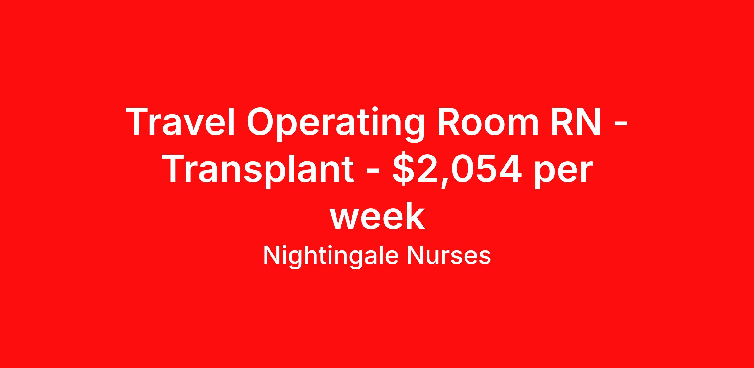 Nightingale Nurses is seeking a travel nurse RN OR - Operating Room for a travel nursing job in Weston, Florida. Job Description & Requirements Specialty: OR - Operating Room Discipline: RN Start Date: 03/23/2026 Duration: 13 weeks 36 hours per week Shift: 12 hours, days Employment Type: Travel About Nightingale Nurses the first name in travel nursing You may not realize it, but as an RN with real world hospital experience, you are legendary. To the lives you’ve helped save, the patients you’ve cared for, and to the hospitals where you’ve done it. And you’re just getting started. Legendary is where Nightingale begins. We’re the first name in travel nursing, representing only the very best RNs. That’s why hospitals prefer us, allowing us to offer exceptional travel nursing assignments all over the US, as well as the highest pay rates and most extensive benefits in the industry. Nightingale facilitates every aspect of your travel nursing assignment, so you can focus on doing what you do best. We want you to grow, explore, and enjoy unrivaled liberty, the freedom to nurse.