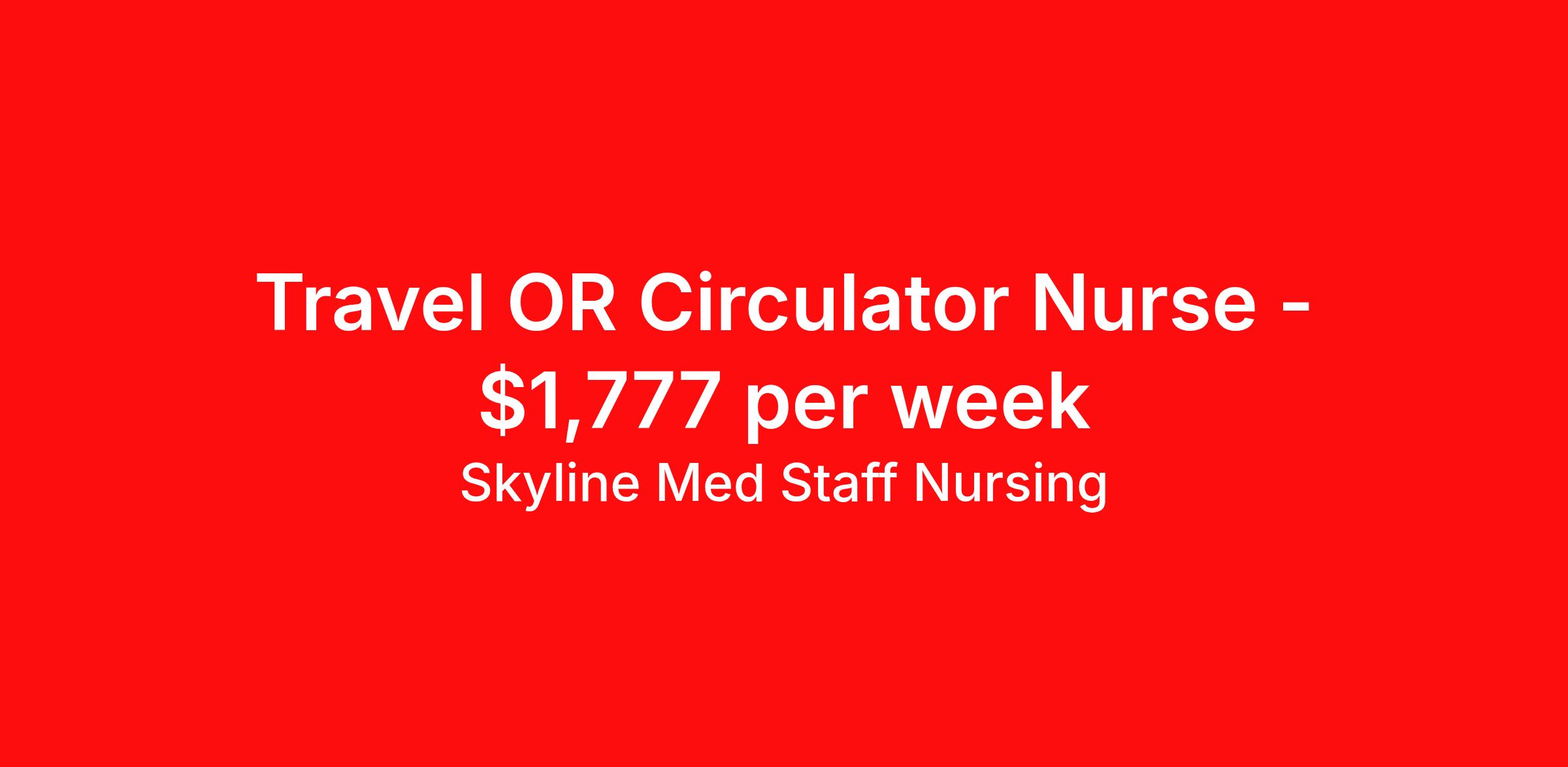 Skyline Med Staff Nursing is seeking a travel nurse RN OR - Operating Room for a travel nursing job in Granbury, Texas. Job Description & Requirements Specialty: OR - Operating Room Discipline: RN Start Date: ASAP Duration: 13 weeks 40 hours per week Shift: 8 hours, days Employment Type: Travel Weekly amount stated in job postings is an estimate based on estimated hourly wage and potential stipends available for the location of the assignment. Pay package is calculated on bill rate at the time job was posted, but can change or vary without notice. Exact pay packages might vary as this is an estimate. Our recruiter would be happy to build an exact pay package for you for each job. Skyline Med Staff Nursing Job ID 36198054. Pay package is based on 8 hour shifts and 40.0 hours per week (subject to confirmation) with tax-free stipend amount to be determined. Posted job title: RN:OR,07:00:00-15:00:00 About Skyline Med Staff Nursing Join the Top- Rated Travel Healthcare Team! Skyline Med Staff was named as the 1 Best Travel Healthcare Company in 2025 by BluePipes, a recognition driven by glowing reviews from travel healthcare professionals. Our recruiters are consistently praised on Google for their responsiveness, dedication, accessibility, and industry knowledge. Ready to experience the difference? Apply for a job today and see why healthcare professionals choose Skyline! Certified Women Owned Business We believe that travel is good for the soul. We want to be on your journey with you and find the right job that fits you Skyline Med Staff is committed to one vision treating others the way that THEY want to be treated. The executive team at Skyline Med Staff focuses on a commitment to quality, consistency, and the highest level of service. Our team members continually strive to build long term relationships that center on you and helping you achieve your goals. Some of the Benefits you will receive with Skyline Med Staff: Over 30 years of combined experience in the staffing industry Higher Take-Home Pay Rates Dedicated Personal Recruiter We are available to you 24/7 Health Insurance Plan Options Tax Free Per Diems, Housing Stipends and Travel Reimbursements Joint Commission Certified Contracts in all 50 states Referral and Loyalty Bonuses Benefits Medical benefits Referral bonus