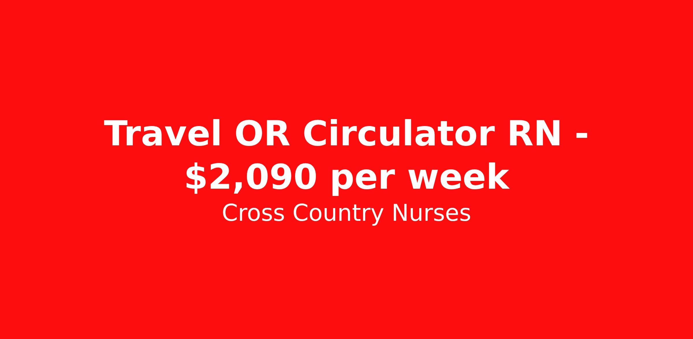 Cross Country Nurses is seeking a travel nurse RN OR Circulate for a travel nursing job in Dillon, Montana. Job Description & Requirements Specialty: OR Circulate Discipline: RN Start Date: 04/06/2026 Duration: 13 weeks 36 hours per week Shift: 12 hours Employment Type: Travel Job Description As an operating room nurse (RN OR), you will manage the care of patients before, during, and after surgery. Working primarily within the operating suite, you will frequently be responsible for preparing the patient, handling and preparing operating instruments and equipment, monitoring patient status, and assisting surgeries as necessary. As a part of your duties, you will provide pre- and post-op education to patients and their families. Minimum Requirements At least 1 year of recent acute care experience in specialty Active RN license Benefits The benefits of taking a travel nursing job with Cross Country include: Private housing or generous housing allowance Comprehensive health insurance with prescription coverage Dependent health insurance with prescription coverage Competitive salaries Referral bonuses Travel reimbursement 401(k) retirement plan Direct deposit/free checking Unlimited free CE credits Cross Country Job ID 1237742. Pay package is based on 12 hour shifts and 36 hours per week (subject to confirmation) with tax-free stipend amount to be determined. Posted job title: Registered Nurse / Operation Room Circulate Only About Cross Country Nurses You care for others — we’re here to care for you. At Cross Country, we know travel nursing is about more than just the job. It’s about building a career that supports your lifestyle, your values, and your impact. We offer competitive pay, full benefits, and 24/7 support from a team that truly understands what it means to be on the front lines. Wherever your journey takes you, we’re with you every step of the way. Let’s build your best life — one assignment at a time. Benefits 401k retirement plan Referral bonus