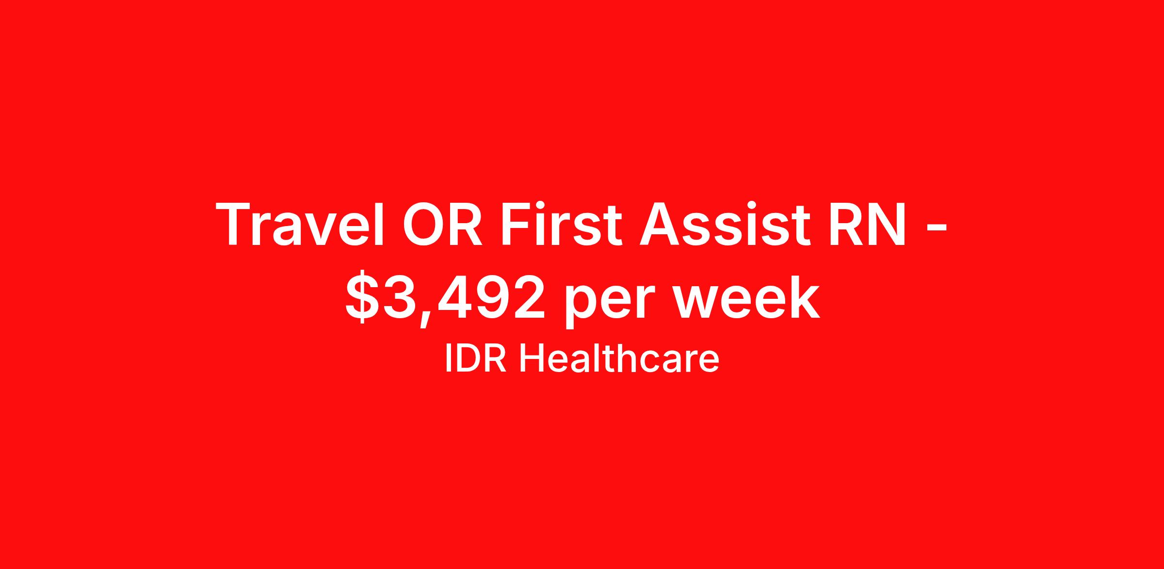 Travel OR First Assist RN - $3,492 per week
