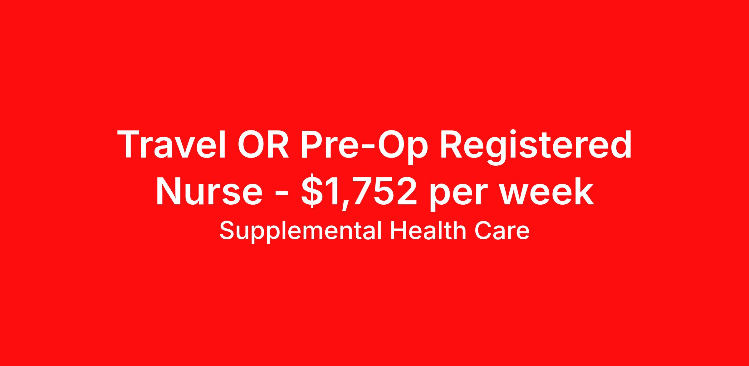 Supplemental Health Care is seeking a travel nurse RN OR - Operating Room for a travel nursing job in Atlanta, Georgia. Job Description & Requirements Specialty: OR - Operating Room Discipline: RN Start Date: ASAP Duration: 13 weeks 40 hours per week Shift: 8 hours, days Employment Type: Travel Job Description: Supplemental Health Care is connecting OR, Pre-Op Registered Nurses with top-tier hospital contracts in Atlanta, Georgia. Travel or stay local, either way, we’ll guide you to an opportunity that matches your goals, offering excellent pay, benefits, and support. Qualifications: Current Georgia Registered Nurse License / Certification American Heart Association BLS 1 to 2 years of recent OR, Pre-Op experience OR, Pre-Op Registered Nurse Contract Details: $1,620 - $1,752 per week* Weekly pay 13-week contract with possibility to extend AM shifts available *Estimated weekly payment may include both taxable wages and tax-free reimbursements for meals, housing, and incidentals. Please speak with a recruiter for details. What We Offer: Full medical, dental, vision, life, and even pet insurance! Round the clock support. No matter where you are or what time it is, Supplemental Health Care is standing by. SHC's Share the Care referral program is the most dynamic, profitable referral program in the industry. 401(k) Retirement Savings Program with a wide range of investment options. Discounted and free online access to CEU courses through Supplemental University. Apply now to launch your next OR, Pre-Op Registered Nurse assignment, or ask our team about other exciting Registered Nurse opportunities. Supplemental Health Care is an Equal Opportunity Employer. All candidates, including veterans and those with disabilities, are encouraged to apply. SHC will consider for employment qualified applicants with criminal histories in a manner consistent with the requirements of applicable local, state, or federal law. To learn more, visit www.shccares.com/eeo Supplemental Health Care Job ID 1469039. Pay package is based on 8 hour shifts and 40 hours per week (subject to confirmation) with tax-free stipend amount to be determined. Posted job title: OR, Pre-Op Registered Nurse About Supplemental Health Care At Supplemental Health Care, a simple belief in the power of caring guides a unique commitment to world-class service in healthcare staffing. For 40 years, we’ve supported talented professionals pursuing their life calling in hospitals, schools, home health, corrections, behavioral health, and other settings. At SHC, we inspire vital connections and enrich lives and inspire better outcomes. As recipients of the Best in Staffing Awards for both Client and Talent, Supplemental Health Care is proud to be among only 2% of staffing companies singled out for the distinction based on the real feedback of our employees and the clients we serve. SHC has also earned The Joint Commission’s Gold Seal of Approval and is named among the Largest Health Care Staffing companies in the United States by Staffing Industry Analysts. We are also thrilled to recognize our very own SLP, Dr. Kelly Byrd as the American Staffing Association 2024 National Staffing Employee of the Year and Health Care Sector All-Star. We’re honored to connect Dr. Byrd to employment, share her incredible story, and support her family literacy nonprofit. For everyone that we serve, SHC is the place where caring hearts thrive. Benefits Referral bonus Benefits start day 1 401k retirement plan Continuing Education Discount program Health savings account