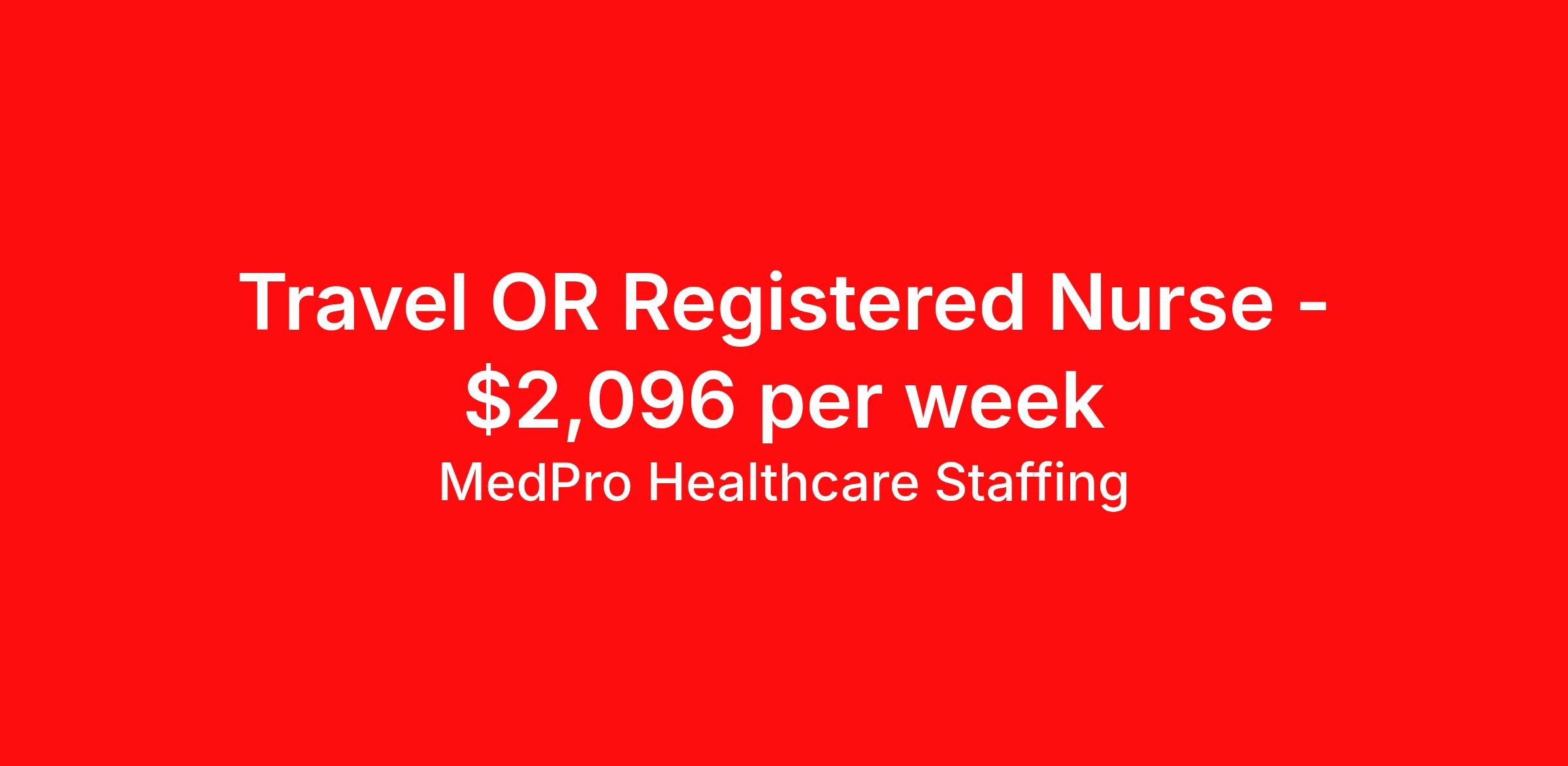 MedPro Healthcare Staffing is seeking a travel nurse RN OR - Operating Room for a travel nursing job in Akron, Ohio. Job Description & Requirements Specialty: OR - Operating Room Discipline: RN Start Date: 04/17/2026 Duration: 13 weeks 40 hours per week Shift: 10 hours, days Employment Type: Travel MedPro Healthcare Staffing , a Joint Commission-certified staffing agency, is seeking a quality Operating Room Registered Nurse (RN) for a travel assignment with one of our top healthcare clients. Requirements Eighteen months of recent experience in an Acute Care Surgery setting Active RN License Degree from an accredited nursing program BLS & ACLS Certifications Other requirements to be determined by our client facility Benefits Weekly pay and direct deposit Full coverage of all credentialing fees Private housing or housing allowance Group Health insurance for you and your family Company-paid life and disability insurance Travel reimbursement 401(k) matching Unlimited Referral Bonuses up to $1,000 Duties Responsibilities Operating Room / Perioperative Nurses offer the skills needed to provide surgical patient care by assessing, planning, and implementing the nursing care patients receive before, during and after surgery Provide surgical patient care by assessing, planning, and implementing the nursing care patients receive before, during and after surgery. The OR nurse / OR RN also serves as patient educator, circulating nurse and/or scrub nurse. Circulating OR nurses work within the operating suite but outside of the sterile field. Scrub OR nurses handle and prepare operating instruments and equipment within the sterile field. About Agency MedPro Healthcare Staffing is a Joint Commission certified provider of contract staffing services. Since 1983, we have placed nursing and allied travelers in top healthcare facilities nationwide. Join us today for your very own MedPro Experience®. If qualified and interested, please call for immediate consideration. MedPro Staffing is an Equal Opportunity Employer. All applicants will be considered for employment without attention to race, color, religion, national origin, age, sex, disability, marital status or veteran status. Key Words: Registered Nurse, RN, Operating Room, Scrub, Circulate, OR, Contract Nurse, Travel Nurse, Agency RN, Travel RN, Nursing, Contract, Perioperative nurse *Weekly payment estimates are intended for informational purposes only and include a gross estimate of hourly wages and reimbursements for meal, incidental, and housing expenses. Your recruiter will confirm your eligibility and provide additional details. MedPro Job ID a0Fcx00000HknDdEAJ. Pay package is based on 10 hour shifts and 40 hours per week (subject to confirmation) with tax-free stipend amount to be determined. Posted job title: Operating Room Registered Nurse Nursing: Operating Room. About MedPro Healthcare Staffing At MedPro Healthcare Staffing , we believe no one cares more for caregivers than we do. Our mission is simple: you focus on your patients, and we’ll take care of the rest. As a Joint Commission-certified leader in temporary and contract healthcare staffing since 1983, MedPro has proudly connected nursing and allied travelers with top healthcare facilities across the nation. With thousands of job opportunities available nationwide, we make it easy to find assignments that align with your goals and lifestyle. Our on-staff clinical support team—alongside a compassionate group of experienced recruiters—provides hands-on guidance every step of the way. From Day 1 medical benefits and a 401(k) plan to personalized career support, we’re committed to ensuring every professional we serve feels valued, cared for, and empowered to succeed. Guided by a CEO who is a Registered Nurse, MedPro is built on a foundation of clinical insight and genuine compassion for the caregiving community. Through The MedPro Experience® , we deliver travel assignments that are rewarding, memorable, and designed to help you DREAM big, EXPLORE often, and ACHIEVE greatness. Benefits Day 1 medical, dental, and vision benefits for you and your family Weekly pay and direct deposit Unlimited Referral Bonuses starting at $500 On Staff Clinical Support Team Access to nationwide travel assignments MPX Mobile app -24/7 real-time access to jobs, credentials, assignment details, and more Full coverage of all credentialing fees Private housing or housing allowance Tax Free Per Diems, Housing Stipends and Travel Reimbursements Company-paid life and disability insurance Travel reimbursement 401(k) matching Benefits Weekly pay Referral bonus Employee assistance programs