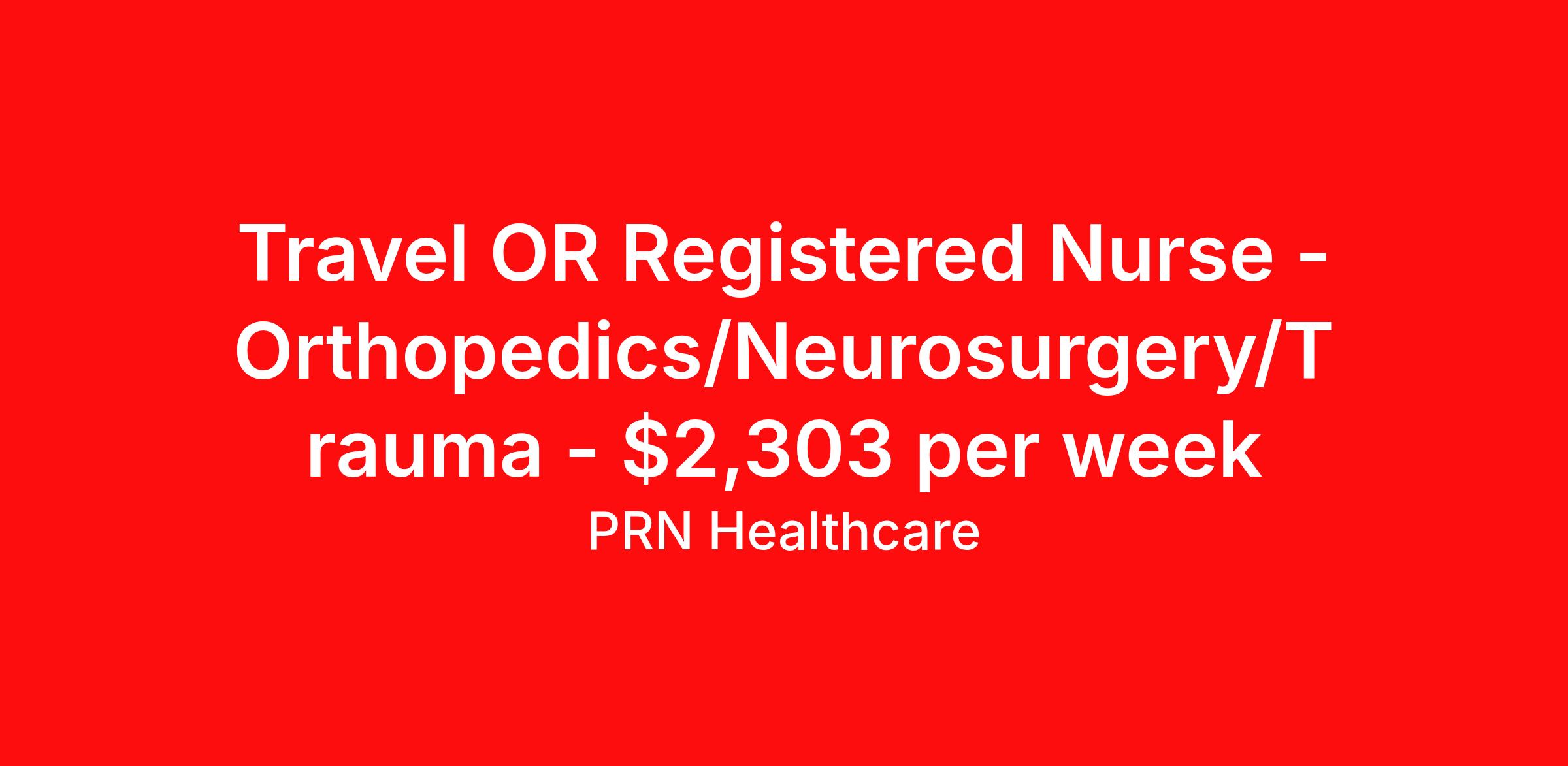 Travel OR Registered Nurse - Orthopedics/Neurosurgery/Trauma - $2,303 per week