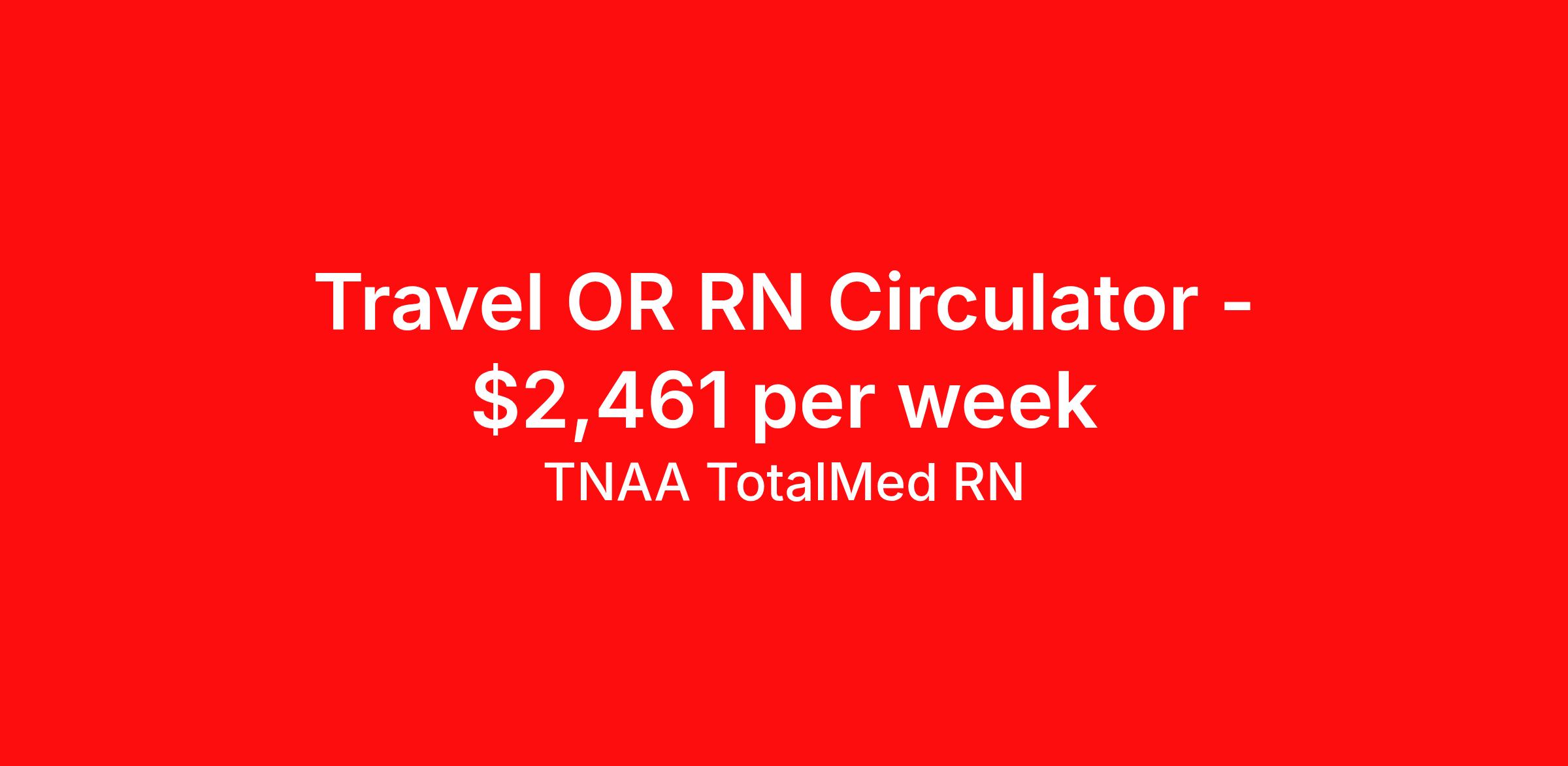 TNAA TotalMed RN is seeking a travel nurse RN OR - Operating Room for a travel nursing job in Kremmling, Colorado. Job Description & Requirements Specialty: OR - Operating Room Discipline: RN Duration: 13 weeks 40 hours per week Shift: 8 hours, days Employment Type: Travel We're looking for Operating Room RNs for an immediate travel nurse opening in Kremmling, CO. The right RN should have 1-2 years recent acute care experience as a circulating nurse, and/or scrub nurse, and potentially RN first assistant. Read below for more requirements. As an OR Travel Nurse, you will assist physicians and medical staff in caring for surgical patients, as well as providing pre- and post-surgery care and education to the patient. Circulating OR Nurses work within the operating suite but outside of the sterile field; Scrub OR Nurses handle and prepare operating instruments and equipment within the sterile field. Surgery responsibilities may include preparing instruments for specific surgical procedures, monitoring and observing the patient during surgery, and responding to potential complications alongside the physician. As an OR Travel Nurse, you should be prepared to perform the following tasks: Provide basic bedside care. Prepare, administer and record prescribed medication, reporting any adverse reactions to treatment. Serve as the communication liaison between patients' family members and members of the operating team. Ensure that the correct procedure(s) is being performed on the correct patient. Initiate patient education plan as prescribed by physician; teach patients and families how to manage medication and home care needs. Additional duties for Circulating OR Nurses may include: Responding to comfort and safety needs of patient. Accurate care and handling of specimens. Monitoring equipment used during surgery. Inventory of surgical items pre- and post-procedure. Additional duties for Scrub OR Nurses may include: Selection and handling of surgical instruments and supplies during procedures. Inventory of surgical items pre- and post-procedure. Additional duties for RN First Assistant may include: Assist physicians by delivering direct surgical care. Help control bleeding. Suture patients following surgery. OR Travel Nurses should be able to stand and walk for long periods of time, as well as bend, lean and stoop without difficulty. RNs should be able to easily lift 20 pounds. Moving or lifting of patients may require lifting of up to 50 pounds at times. RNs may face hazards from exposure to certain chemicals or infectious diseases in the operating room environment. Requirements*: BLS, 2 Years * Additional certifications may be required before beginning an assignment. TotalMed Travel Job ID 1413455. Pay package is based on 8 hour shifts and 40 hours per week (subject to confirmation) with tax-free stipend amount to be determined. Posted job title: Operating Room - OR RN - Travel Nurse About TNAA TotalMed RN TotalMed is a Top Ten, travel nursing and healthcare staffing agency with the mission of igniting purpose in healthcare. The organization staffs nurses, therapists, pharmacists, and other clinicians of all specialties in all 50 states. They offer local and travel jobs and match caregivers with the right organization to assist both facilities and patients. As an organization, they focus on putting highly-skilled staff into facilities to ensure adequate staffing for a better patient experience. TotalMed specializes in recruiting and placing healthcare professionals in travel, PRN, and permanent positions across the country in Nursing and Allied Health. Throughout 2020, the organization filled roles at even the most short-staffed facilities during the most challenging time in healthcare. By matching the right travel healthcare professional with the right organization, TotalMed continues to offer a lifeline to facilities and their patients. Benefits Weekly pay Guaranteed Hours Continuing Education 401k retirement plan Sick pay Wellness and fitness programs Referral bonus Employee assistance programs Medical benefits Dental benefits Vision benefits Benefits start day 1