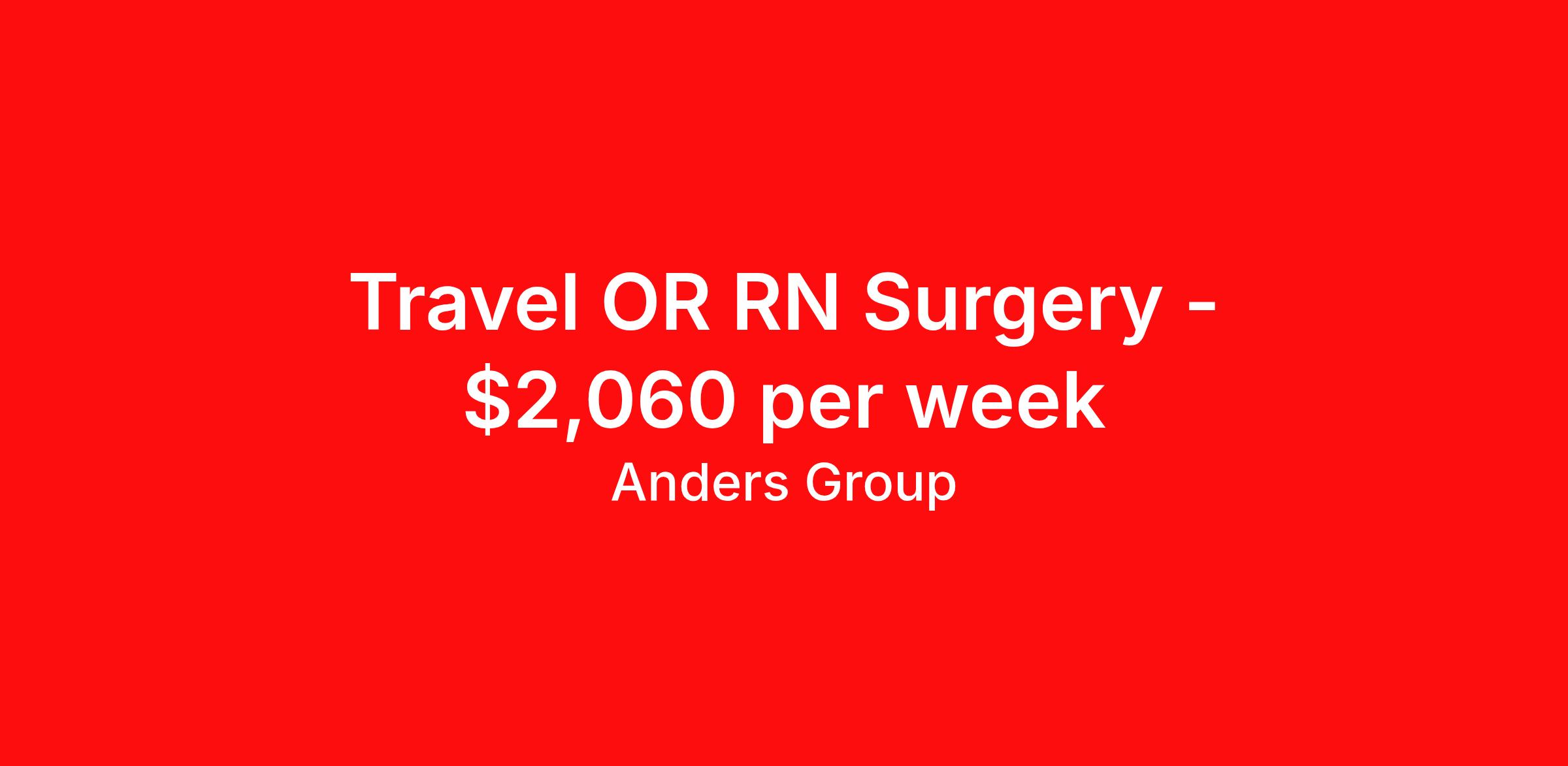 Anders Group is seeking a travel nurse RN OR - Operating Room for a travel nursing job in Reno, Nevada. Job Description & Requirements Specialty: OR - Operating Room Discipline: RN Start Date: ASAP Duration: 13 weeks 36 hours per week Shift: 12 hours, days Employment Type: Travel Anders Group Job ID 988498. Pay package is based on 12 hour shifts and 36 hours per week (subject to confirmation) with tax-free stipend amount to be determined. Posted job title: OR RN About Anders Group WHY ANDERS? Anders Group is a Joint Commission accredited staffing agency and stands out from other agencies by our commitment to making sure our travelers are given the best customer service. Our team works hard to find the best jobs with the most aggressive rates! Anders Group offers rewarding assignments and competitive compensation packages, nationwide! We offer the following benefits from day one: Health Insurance, Including a Buy-up Option Dental Insurance Vision Insurance Life Insurance 401(k) Licensure Reimbursement Premium Pay Packages CEU Reimbursements Daily Per Diems Travel Reimbursements Rental Car Allowances Continuing Education Resources Referral Bonus And Many More! THE ANDERS DIFFERENCE You're committed to providing exceptional healthcare. We're committed to you. Anders Group was founded by a team of healthcare recruiters who had built strong relationships with healthcare facilities and professionals nationwide. As staffing firms shifted their focus to numbers and margins, these recruiters saw a need for a company to take a different approach to staffing. Anders Group was founded in 2010 to do just that. We focus on individual and facility goals to make quality placements. Great people working with great facilities make for the best placements. Through our focus on providing the best experience to Allied and Nursing health care professionals, Anders Group has grown to be a top staffing firm in Healthcare. We look forward to working with you! Benefits Medical benefits Dental benefits Vision benefits Life insurance 401k retirement plan License and certification reimbursement Continuing Education Referral bonus