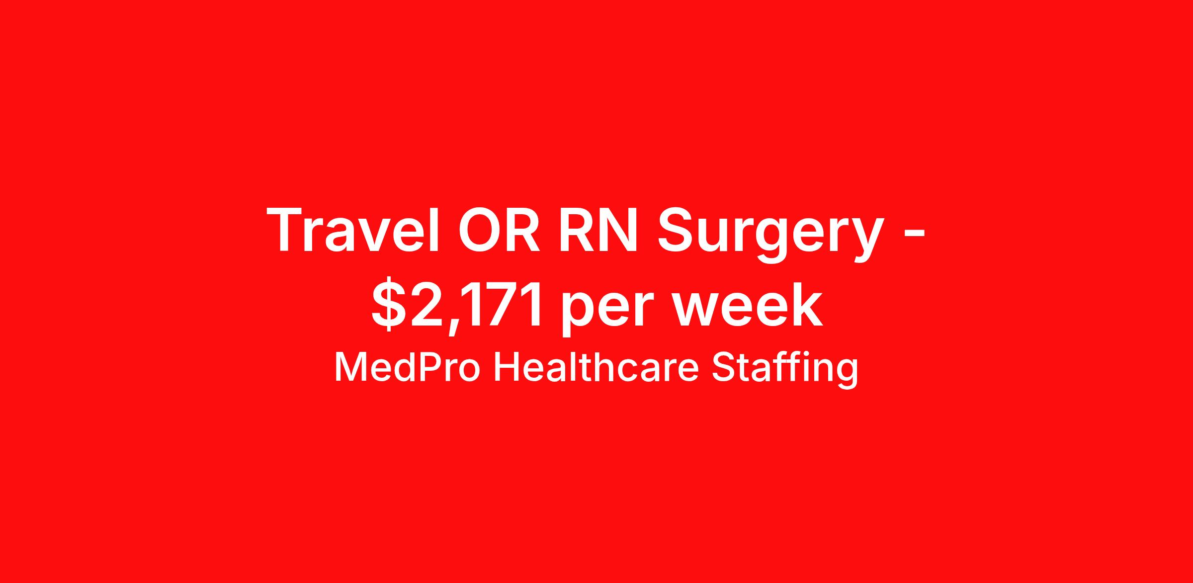 MedPro Healthcare Staffing is seeking a travel nurse RN OR - Operating Room for a travel nursing job in Reno, Nevada. Job Description & Requirements Specialty: OR - Operating Room Discipline: RN Start Date: 04/06/2026 Duration: 13 weeks 36 hours per week Shift: 12 hours, days Employment Type: Travel MedPro Healthcare Staffing , a Joint Commission-certified staffing agency, is seeking a quality Operating Room Registered Nurse (RN) for a travel assignment with one of our top healthcare clients. Requirements Eighteen months of recent experience in an Acute Care Surgery setting Active RN License Degree from an accredited nursing program BLS & ACLS Certifications Other requirements to be determined by our client facility Benefits Weekly pay and direct deposit Full coverage of all credentialing fees Private housing or housing allowance Group Health insurance for you and your family Company-paid life and disability insurance Travel reimbursement 401(k) matching Unlimited Referral Bonuses up to $1,000 Duties Responsibilities Operating Room / Perioperative Nurses offer the skills needed to provide surgical patient care by assessing, planning, and implementing the nursing care patients receive before, during and after surgery Provide surgical patient care by assessing, planning, and implementing the nursing care patients receive before, during and after surgery. The OR nurse / OR RN also serves as patient educator, circulating nurse and/or scrub nurse. Circulating OR nurses work within the operating suite but outside of the sterile field. Scrub OR nurses handle and prepare operating instruments and equipment within the sterile field. About Agency MedPro Healthcare Staffing is a Joint Commission certified provider of contract staffing services. Since 1983, we have placed nursing and allied travelers in top healthcare facilities nationwide. Join us today for your very own MedPro Experience®. If qualified and interested, please call for immediate consideration. MedPro Staffing is an Equal Opportunity Employer. All applicants will be considered for employment without attention to race, color, religion, national origin, age, sex, disability, marital status or veteran status. Key Words: Registered Nurse, RN, Operating Room, Scrub, Circulate, OR, Contract Nurse, Travel Nurse, Agency RN, Travel RN, Nursing, Contract, Perioperative nurse *Weekly payment estimates are intended for informational purposes only and include a gross estimate of hourly wages and reimbursements for meal, incidental, and housing expenses. Your recruiter will confirm your eligibility and provide additional details. MedPro Job ID a0Fcx00000ChLf0EAF. Pay package is based on 12 hour shifts and 36 hours per week (subject to confirmation) with tax-free stipend amount to be determined. Posted job title: Operating Room Registered Nurse Nursing: Operating Room. About MedPro Healthcare Staffing At MedPro Healthcare Staffing , we believe no one cares more for caregivers than we do. Our mission is simple: you focus on your patients, and we’ll take care of the rest. As a Joint Commission-certified leader in temporary and contract healthcare staffing since 1983, MedPro has proudly connected nursing and allied travelers with top healthcare facilities across the nation. With thousands of job opportunities available nationwide, we make it easy to find assignments that align with your goals and lifestyle. Our on-staff clinical support team—alongside a compassionate group of experienced recruiters—provides hands-on guidance every step of the way. From Day 1 medical benefits and a 401(k) plan to personalized career support, we’re committed to ensuring every professional we serve feels valued, cared for, and empowered to succeed. Guided by a CEO who is a Registered Nurse, MedPro is built on a foundation of clinical insight and genuine compassion for the caregiving community. Through The MedPro Experience® , we deliver travel assignments that are rewarding, memorable, and designed to help you DREAM big, EXPLORE often, and ACHIEVE greatness. Benefits Day 1 medical, dental, and vision benefits for you and your family Weekly pay and direct deposit Unlimited Referral Bonuses starting at $500 On Staff Clinical Support Team Access to nationwide travel assignments MPX Mobile app -24/7 real-time access to jobs, credentials, assignment details, and more Full coverage of all credentialing fees Private housing or housing allowance Tax Free Per Diems, Housing Stipends and Travel Reimbursements Company-paid life and disability insurance Travel reimbursement 401(k) matching Benefits Weekly pay Referral bonus Employee assistance programs