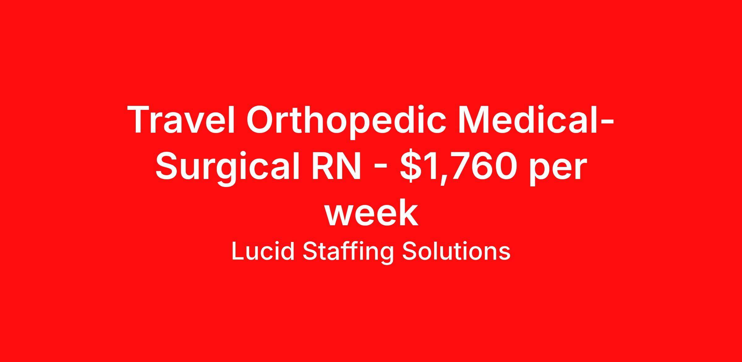 Lucid Staffing Solutions is seeking a travel nurse RN Med Surg for a travel nursing job in Lawrenceburg, Tennessee. Job Description & Requirements Specialty: Med Surg Discipline: RN Duration: 13 weeks 36 hours per week Shift: 12 hours, nights Employment Type: Travel Job Description Position: Travel Registered Nurse (RN) with experience in MS Location: Lawrenceburg, Tennessee Shift: 12hr Night Weekly Gross: $1760.29 Lucid Staffing Solutions was created by former healthcare workers who lived the short staffing, the chaotic workflows, and the nonstop pressure that comes with patient care. We built an agency powered by real clinical experience, kept simple and supportive, so you never have to guess whether the people guiding you actually know what they’re talking about. Minimum Requirements: Active license as a Registered Nurse (RN) Licensed in Tennessee (If applicable) or compact eligible Two years of recent MS experience Active BLS Why Lucid Works for Travelers Paid Weekly: Stipends pushed to GSA limits whenever possible $500 Travel Reimbursement: Paid at the start of each assignment Clinician-Led Team: Recruiters and Account Managers with real clinical experience In-House Compliance: fast updates, real communication, and none of the delays that come with outsourced vendors. Health Coverage Options: Multiple medical plans plus dental, vision, and workers compensation 401(k) Match: 4 percent match after 6 months License & Certification Reimbursement: We help cover the cost of staying compliant Liability Insurance: Included automatically Referral Bonuses: $500 per referral, $750 after five referrals Ready to start your journey? Apply today to connect with a Clinician-Recruiter! Lucid Staffing Solutions Job ID 37465. Pay package is based on 12 hour shifts and 36 hours per week (subject to confirmation) with tax-free stipend amount to be determined. Posted job title: MS About Lucid Staffing Solutions Clinician Owned & Operated At Lucid Staffing Solutions, we do things differently—because we’ve been in your shoes. Founded by actual healthcare professionals, Lucid was built to fix the issues we experienced as travelers. We know what makes a great assignment: competitive pay, seamless onboarding, honest recruiters, and most importantly—working with a team that truly sees and supports you. Our entire team is made up of former clinicians who understand the demands of the job and what travelers truly need to succeed. We offer some of the highest paying allied health and nursing contracts across the country, along with some amazing benefits & perks. Whether you're chasing freedom, flexible schedules, bigger paychecks, or your next adventure, Lucid helps you get there—with real support, real respect , and real healthcare experts. Benefits Dental benefits Medical benefits Vision benefits