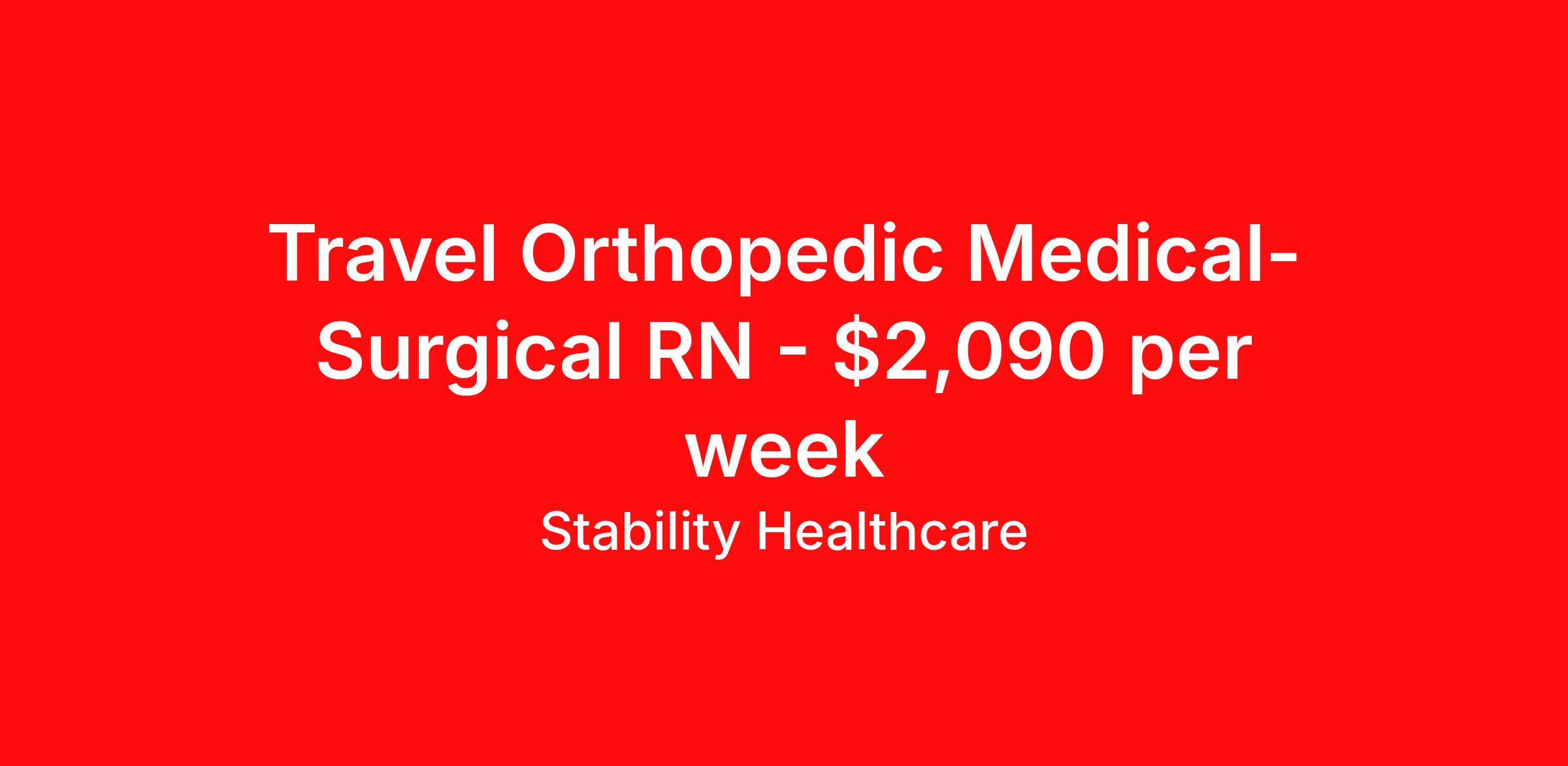 Stability Healthcare is seeking a travel nurse RN Med Surg for a travel nursing job in Springfield, Illinois. Job Description & Requirements Specialty: Med Surg Discipline: RN Start Date: 04/13/2026 Duration: 13 weeks 36 hours per week Shift: 12 hours, nights Employment Type: Travel Stability Healthcare is looking for a Med-Surg RN contract position in Springfield, IL. The majority of hospitalized patients are admitted to M/S either directly or after surgery. M/S is also where patients who have been in critical care (ICU) are transferred when they no longer need critical care but still require nursing care. *$600 travel bonus *Day 1 health insurance with United Healthcare *PTO plan start accruing on day 1, use during contract or cash out at the end! *Guaranteed stipend if facility calls you off *Extra hour bonus earn an additional hourly bonus for working over your weekly contracted hours Stability Job ID 813168. Pay package is based on 12 hour shifts and 36 hours per week (subject to confirmation) with tax-free stipend amount to be determined. Posted job title: Med-Surg About Stability Healthcare Stability Healthcare was founded in 2009, with the mission of becoming the best Travel Nursing Agency in California. We have been rated one of the top travel nursing agencies and offer our nurses the highest paying travel nursing jobs available. We have access to the best travel assignments from 1000’s of facilities. You can start the year off in sunny California, spend the Spring in the Colorado Rockies, enjoy the Summer in the Mid-West, experience the change of seasons in Boston and New York, and hit the beaches of Florida in the winter. Our Nurses work in the best hospitals and health systems in the country. Benefits Guaranteed Hours Benefits start day 1