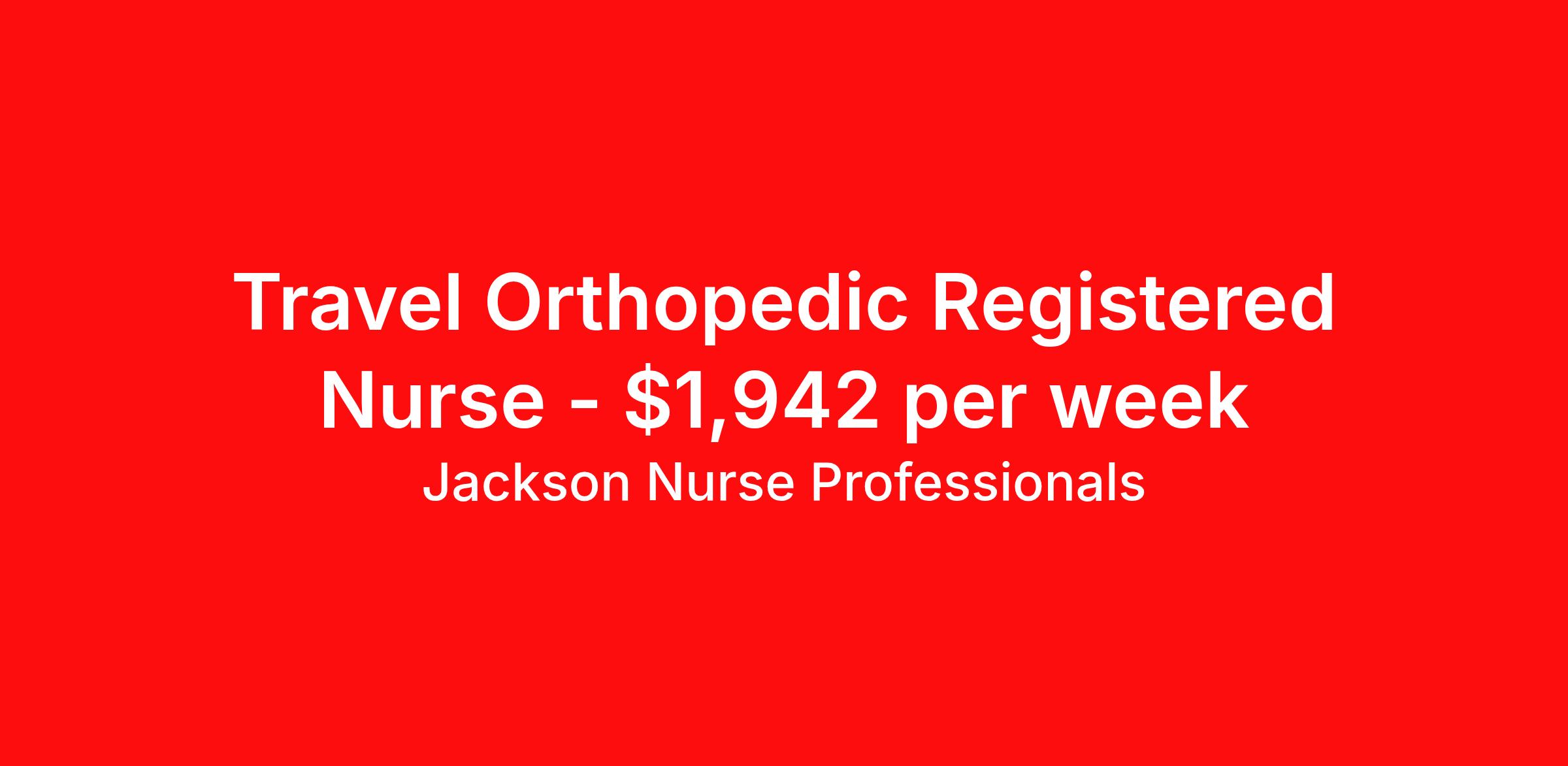 Jackson Nurse Professionals is seeking a travel nurse RN Orthopedics Med Surg for a travel nursing job in Burlington, North Carolina. Job Description & Requirements Specialty: Orthopedics Discipline: RN Start Date: 04/06/2026 Duration: 13 weeks 36 hours per week Shift: 12 hours, nights Employment Type: Travel At Jackson Nurse Professionals , we are dedicated to supporting travel nurses and helping you build a fulfilling nursing career. Whether you’re looking for your first or next travel nursing assignment, we specialize in connecting healthcare professionals with leading medical facilities. With a focus on personalized service and a wide range of opportunities, we make it easier than ever for nurses to find the right balance of adventure and professional growth. Qualifications: 2 years of recent experience in area of specialty listed on job Current BLS required (certifications vary by location – job may require ACLS) Valid license and/or certification in state of practice Valid Driver's License Background and drug screen Benefits: Full Medical, Dental and Vision Insurance 401(k) with Employer Match 24/7/365 Support from your Recruiter available by text, phone, or email Referral Bonus Program: Give $200, Get $500 for every referral Same Day Immediate Pay Access Certification & Licensure Reimbursement Apply today to experience the Jackson Nurse Professionals difference! Jackson Nurse Professionals Job ID 2475856. Pay package is based on 12 hour shifts and 36 hours per week (subject to confirmation) with tax-free stipend amount to be determined. About Jackson Nurse Professionals Filling critical needs in patient care, Jackson Nurse Professionals delivers cost-effective travel nurse staffing solutions to over 500 hospitals, outpatient clinics, and home health clients nationwide. Awarded Best of Staffing - Talent and Client 2024, and rated as a Top Workplace 2023 by the Orlando Sentinel, Jackson Nurse Professionals goes the extra mile to provide travel nurses the career they deserve, while providing clients with a large range of highly skilled nurses to fill short, long-term, and temporary assignments. As a member of Jackson Healthcare’s family of award-winning staffing companies, we’re part of a growing community that’s impacting 10 million patients nationwide. Join our mission to improve the delivery of patient care, and the lives of everyone we touch.