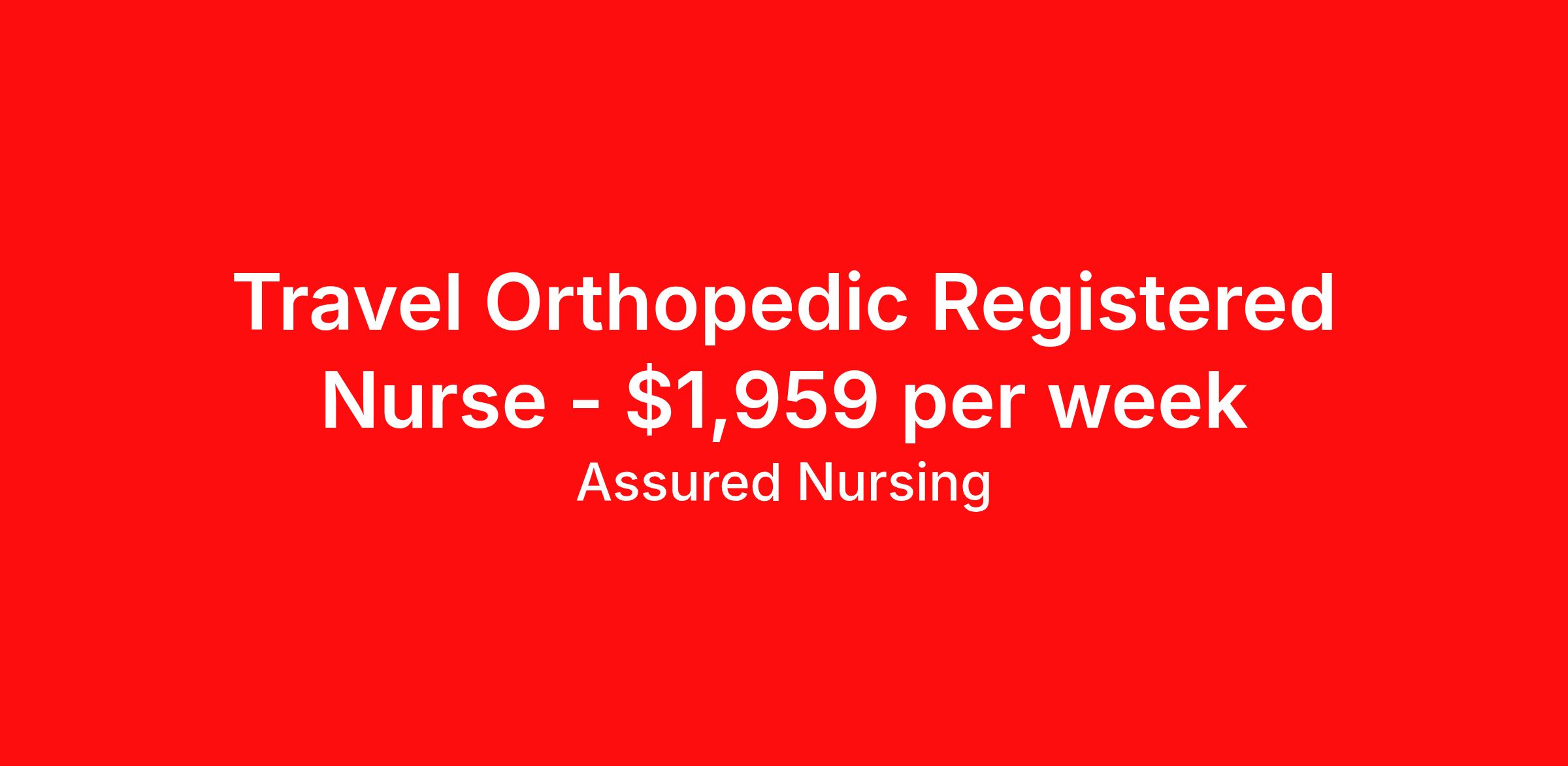 Assured Nursing is seeking a travel nurse RN Orthopedics Med Surg for a travel nursing job in Burlington, North Carolina. Job Description & Requirements Specialty: Orthopedics Discipline: RN Start Date: 04/06/2026 Duration: 13 weeks 36 hours per week Shift: 12 hours, nights Employment Type: Travel Assured Nursing is currently seeking a RN for a contract position in Burlington North Carolina . This is a 7p-7:30a, 19:00:00-07:30:00, 12.00-3 position in the *ARMC - 1A Ortho - 410002 - 30 - 30 . The ideal candidate will possess a current state license as a RN and have at least 2 years of recent experience as a Ortho RN . Assured Nursing Job ID 36177515. Pay package is based on 12 hour shifts and 36.0 hours per week (subject to confirmation) with tax-free stipend amount to be determined. Posted job title: RN:Ortho,19:00:00-07:30:00 Benefits Weekly pay Holiday Pay 401k retirement plan Referral bonus Medical benefits Dental benefits Vision benefits