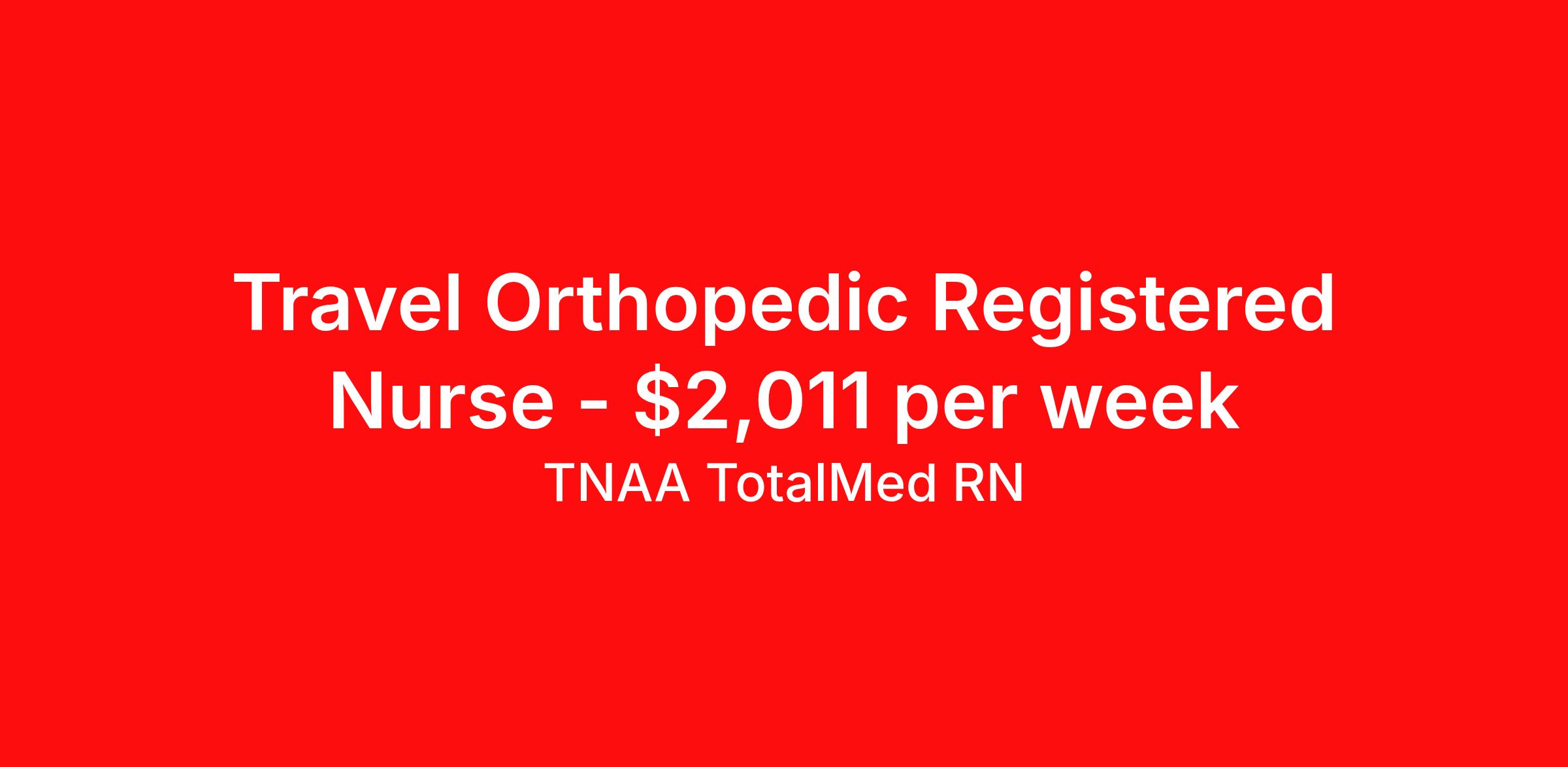TNAA TotalMed RN is seeking a travel nurse RN Orthopedics for a travel nursing job in Springfield, Illinois. Job Description & Requirements Specialty: Orthopedics Discipline: RN Duration: 13 weeks 36 hours per week Shift: 12 hours, nights Employment Type: Travel We're looking for Medical Surgical RNs for an immediate travel nurse opening in Springfield, IL. The right RN should have 1-2 years recent acute care experience. Read below for more requirements. As a MedSurg RN, you will conduct patient assessments and prioritize data collection based on patients' immediate conditions or needs. MedSurg RNs perform ongoing assessments and appropriate treatments as ordered by a physician. Documenting patient findings and providing education and support to patients' families is essential to this travel nurse position. As a Medical Surgical Travel Nurse, you should be prepared to perform the following tasks: Provide bedside care for a variety of patients, including pre- and post-op patients. Prepare, administer and record prescribed medication, reporting any adverse reactions to treatment. Change dressings, insert catheters and start IVs. Prepares equipment and aids physician during examination and treatment of patient. Educates patients on surgical procedures. Participates in discharge planning and initiates patient education plan as prescribed by physician. Medical Surgical Travel Nurses should be able to stand and walk for long periods of time, as well as bend, lean and stoop without difficulty. RNs should be able to easily lift 20 pounds. Moving or lifting of patients may require lifting of up to 50 pounds at times. RNs will work in a fast-paced environment treating patients that may be confused, agitated, and/or uncooperative. Requirements*: BLS, 2 Years * Additional certifications may be required before beginning an assignment. TotalMed Travel Job ID 1391140. Pay package is based on 12 hour shifts and 36 hours per week (subject to confirmation) with tax-free stipend amount to be determined. Posted job title: Medical/Surgical - MedSurg RN - Travel Nurse About TNAA TotalMed RN TotalMed is a Top Ten, travel nursing and healthcare staffing agency with the mission of igniting purpose in healthcare. The organization staffs nurses, therapists, pharmacists, and other clinicians of all specialties in all 50 states. They offer local and travel jobs and match caregivers with the right organization to assist both facilities and patients. As an organization, they focus on putting highly-skilled staff into facilities to ensure adequate staffing for a better patient experience. TotalMed specializes in recruiting and placing healthcare professionals in travel, PRN, and permanent positions across the country in Nursing and Allied Health. Throughout 2020, the organization filled roles at even the most short-staffed facilities during the most challenging time in healthcare. By matching the right travel healthcare professional with the right organization, TotalMed continues to offer a lifeline to facilities and their patients. Benefits Weekly pay Guaranteed Hours Continuing Education 401k retirement plan Sick pay Wellness and fitness programs Referral bonus Employee assistance programs Medical benefits Dental benefits Vision benefits Benefits start day 1