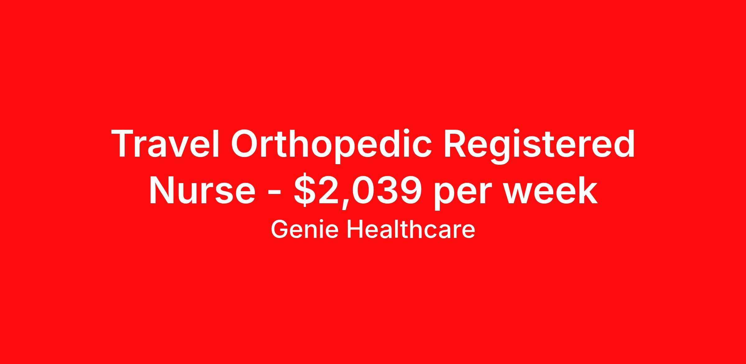 Genie Healthcare is seeking a travel nurse RN Orthopedic Surgery for a travel nursing job in Asheville, North Carolina. Job Description & Requirements Specialty: Orthopedic Surgery Discipline: RN Start Date: 04/13/2026 Duration: 13 weeks 36 hours per week Shift: 12 hours, nights Employment Type: Travel Genie Healthcare is looking for a RN to work in Orthopedic Surgery for a 13 weeks travel assignment located in Asheville, NC for the Shift (3x12 nights, 19:00:00-07:00:00, 12.00-3). Pay and benefits packages are estimated based on client bill rate at time the job was posted. These rates are subject to change. Exact pay and benefits vary based on several things, including, but not limited to, guaranteed hours, client changes in bill rate, experience, etc. Benefits: Medical Insurance, Dental Insurance, Vision Insurance, 401(k) with company matching (50% up to 6% of what you contribute) Genie Healthcare Job ID 17964130. Pay package is based on 12 hour shifts and 36.0 hours per week (subject to confirmation) with tax-free stipend amount to be determined. Posted job title: RN:Orthopedic Surgery,19:00:00-07:00:00 About Genie Healthcare Genie Healthcare is one of the fastest growing Nurse Travel Agencies in the USA. Genie serves hundreds of facilities and has over 4000 current travel RN contracts open at any given time. Genie provides travel RN’s flexibility, support, top pay scale, housing and the 1 rated, multi-state health insurance coverage. Genie Healthcare carries with it a commitment to providing a comprehensive level of service and quality care. Growing from a small team of eager recruiters to a company with satisfied clients in nearly every corner of the nation, delivering excellence in patient and customer care is the key to Genie’s success. The management team has 20 years of experience in workforce solutions and staffing in medical and non-medical fields, roles ranging from Clerical job to Cardiologist to software developer to CEO.