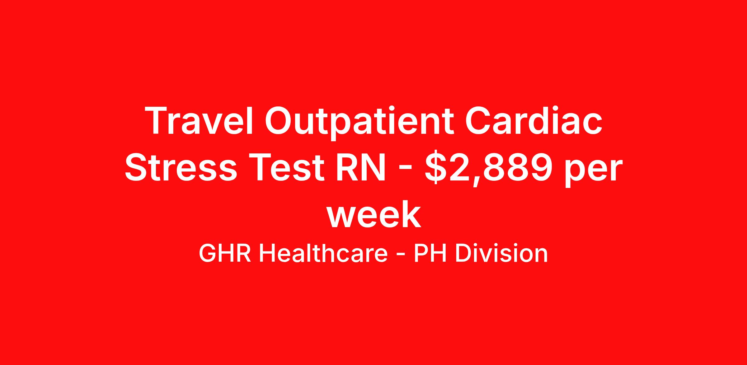 GHR Healthcare - PH Division is seeking a travel nurse RN Outpatient Cardiology Level V for a travel nursing job in Camp Hill, Pennsylvania. Job Description & Requirements Specialty: Cardiology Discipline: RN Start Date: ASAP Duration: 13 weeks 36 hours per week Shift: 12 hours Employment Type: Travel Planet Healthcare Job ID 76186665. Pay package is based on 12 hour shifts and 36 hours per week (subject to confirmation) with tax-free stipend amount to be determined. About GHR Healthcare - PH Division For over 30 years, GHR Healthcare has been the bridge between healthcare professionals and the facilities that need them nationwide. We're committed to uncovering your ideal fit, supported by GHR's dedication to competitive compensation, transparent communication, and a devoted team that genuinely cares about your career journey. You can trust us to stand by your side as your advocate, confidante, and partner in advancing your career. At GHR, care and consideration are at the heart of everything we do. Visit ghrhealthcare.com to learn more.