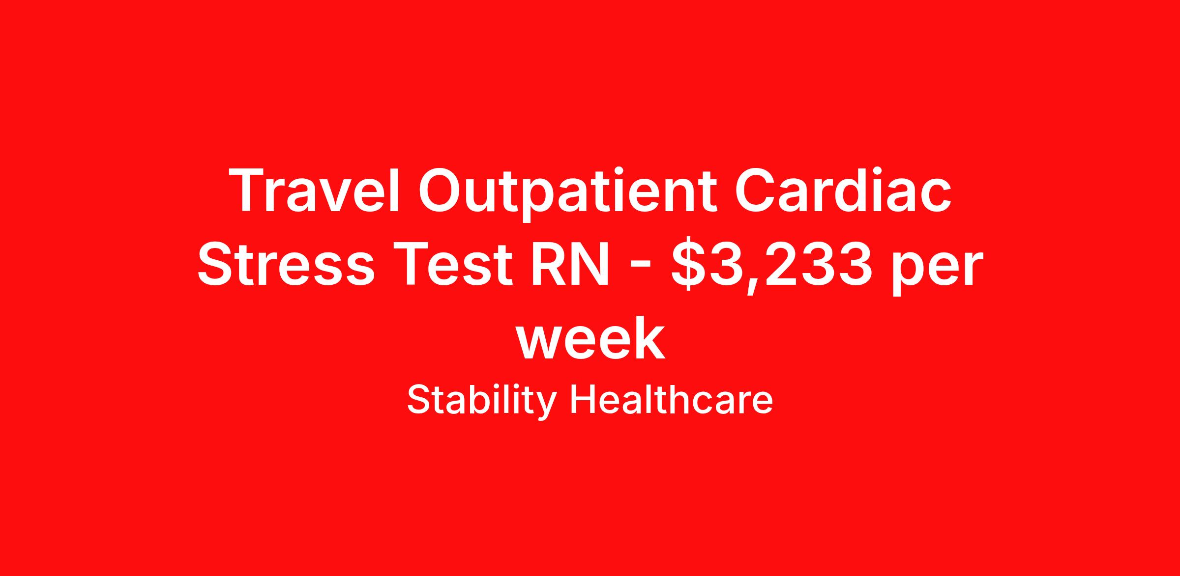 Stability Healthcare is seeking a travel nurse RN Cardiology for a travel nursing job in Camp Hill, Pennsylvania. Job Description & Requirements Specialty: Cardiology Discipline: RN Duration: 14 weeks 40 hours per week Shift: 8 hours, days Employment Type: Travel Stability Healthcare is looking for a Outpatient Clinic - RN RN contract position in Camp Hill, PA. These nurses work with patients who are not hospitalized and visit the clinic for various medical services, including routine check-ups, diagnostic tests, and minor procedures. The RN's duties typically include conducting patient assessments, administering medications, providing patient education and counseling, assisting with diagnostic tests and procedures, and collaborating with physicians and other healthcare professionals to ensure patients receive appropriate care. They may also be responsible for managing patient records, scheduling appointments, and coordinating care with other healthcare providers. Overall, the outpatient clinic RN plays a critical role in ensuring patients receive high-quality care in a comfortable and convenient setting. *$600 travel bonus *Day 1 health insurance with United Healthcare *PTO plan start accruing on day 1, use during contract or cash out at the end! *Guaranteed stipend if facility calls you off *Extra hour bonus earn an additional hourly bonus for working over your weekly contracted hours Stability Job ID 825397. Pay package is based on 8 hour shifts and 40 hours per week (subject to confirmation) with tax-free stipend amount to be determined. Posted job title: Outpatient Clinic - RN About Stability Healthcare Stability Healthcare was founded in 2009, with the mission of becoming the best Travel Nursing Agency in California. We have been rated one of the top travel nursing agencies and offer our nurses the highest paying travel nursing jobs available. We have access to the best travel assignments from 1000’s of facilities. You can start the year off in sunny California, spend the Spring in the Colorado Rockies, enjoy the Summer in the Mid-West, experience the change of seasons in Boston and New York, and hit the beaches of Florida in the winter. Our Nurses work in the best hospitals and health systems in the country. Benefits Guaranteed Hours Benefits start day 1
