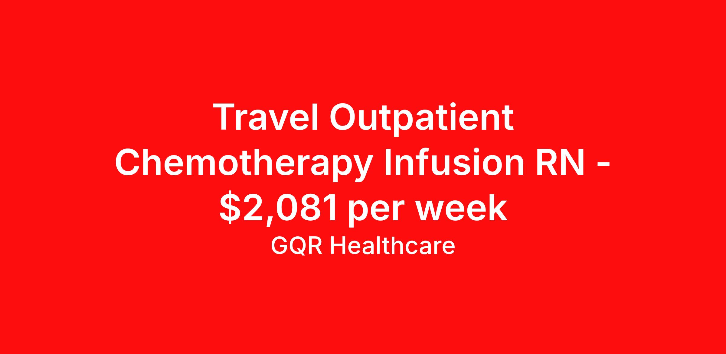 Travel Outpatient Chemotherapy Infusion RN - $2,081 per week