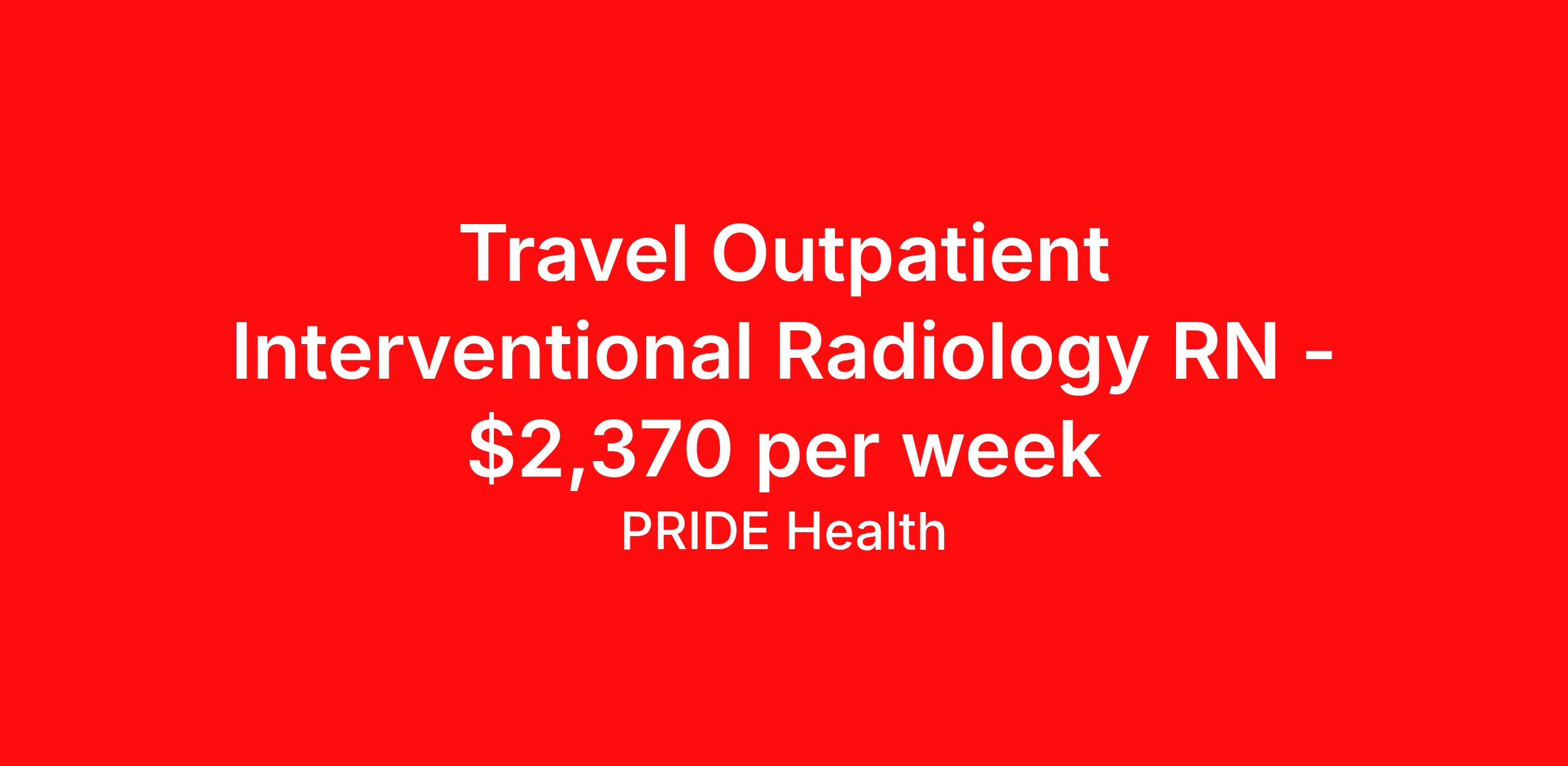 Travel Outpatient Interventional Radiology RN - $2,370 per week