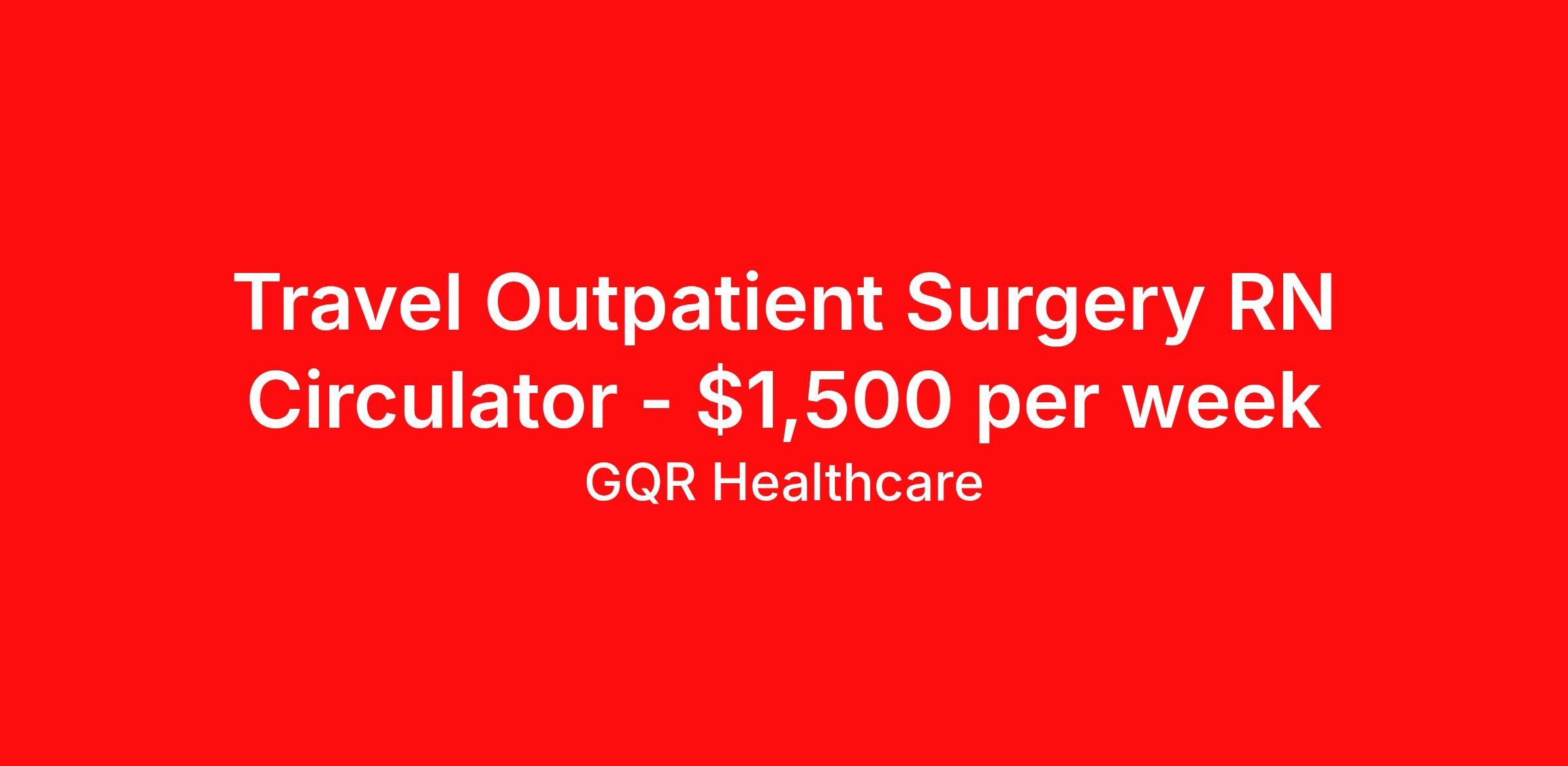 Travel Outpatient Surgery RN Circulator - $1,500 per week