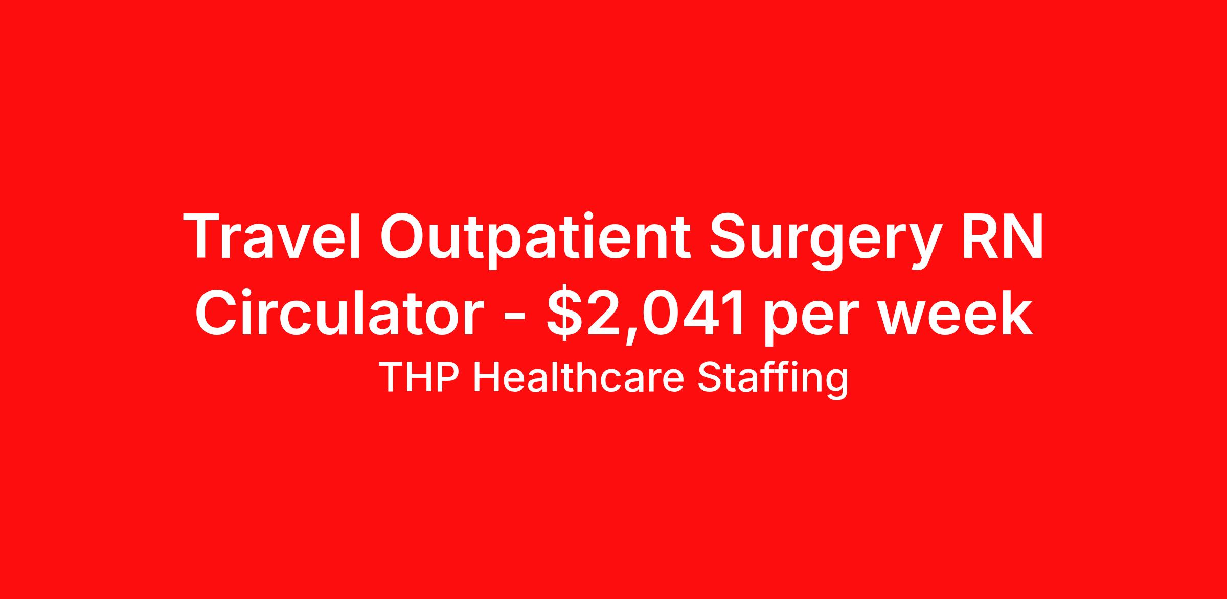 THP Healthcare Staffing is seeking a travel nurse RN OR - Operating Room for a travel nursing job in Augusta, Georgia. Job Description & Requirements Specialty: OR - Operating Room Discipline: RN Start Date: 04/13/2026 Duration: 14 weeks 36 hours per week Shift: 12 hours, days Employment Type: Travel Our Client is currently seeking RN - Operating Room positions in Augusta, GA for a 3x12 Days shift. You must have current State Licensure and at least 1 year of recent experience. Requirements Current Resume State Licensure Current BLS and/or ACLS and/or Specialty Certifications 2 Current Clinical References Physical (Within 12 Months) TB Skin Test (Within 12 Months) Titers - MMR/Hep B/Varicella Respiratory Fit Test (Within 12 Months) Current - Tdap/Flu Vaccinations Must be able to pass pre-employment, background and urine drug screening Compensation and Benefits Compettive Pay Packages Health Benefit Package Travel pay - 1st pay check Extending Contract Bonus Refer a friend and earn extra cash! At THP Healthcare Staffing, we take care of you - work with us, not for us! THP Healthcare Staffing Job ID 17972232. Pay package is based on 12 hour shifts and 36.0 hours per week (subject to confirmation) with tax-free stipend amount to be determined. Posted job title: RN:Operating Room,07:00:00-19:00:00 About THP Healthcare Staffing At THP Staffing, we specialize in connecting healthcare facilities with highly skilled travel nurses and allied health professionals who bring exceptional care and expertise wherever they go. Our mission is to ensure that every healthcare provider has access to top nursing talent, regardless of location, to deliver superior patient outcomes. Benefits Weekly pay Life insurance Pet insurance License and certification reimbursement Medical benefits Employee assistance programs Referral bonus Vision benefits Holiday Pay Health savings account